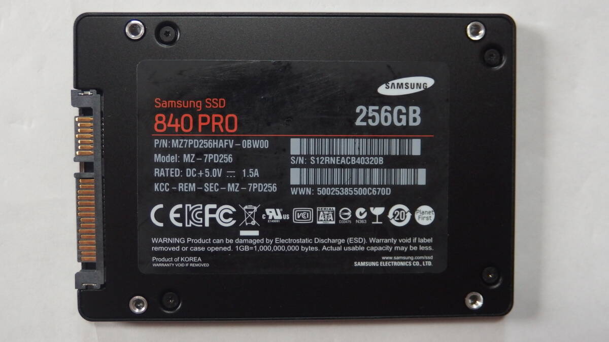 ・こちらの商品は、SAMSUNG 2.5インチ 7mm厚 SATA3 接続 内蔵 SSD 256GB  Samsung SSD 840 PRO MZ7PD256HAFV-0BW00 動作品 です。