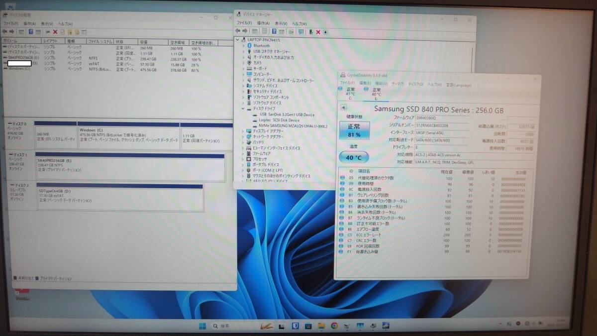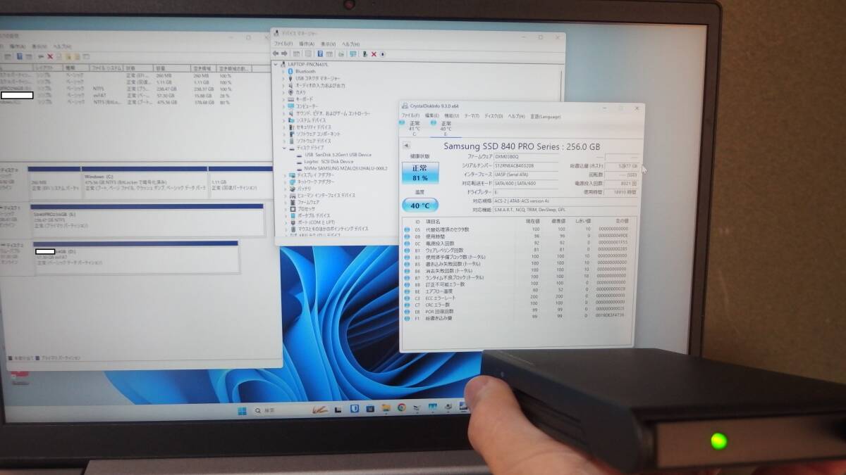 SAMSUNG 2.5インチ 7mm厚 SATA3 接続 内蔵 SSD 256GB Samsung SSD 840 PRO MZ7PD256HAFV-0BW00 動作品