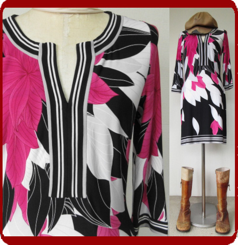 古着♪レトロ調・花柄チュニックワンピ♪70s60s70年代60年代80年代ヴィンテージアンティーク調昭和モダン即決まとめ長袖秋冬クラシカル