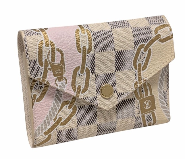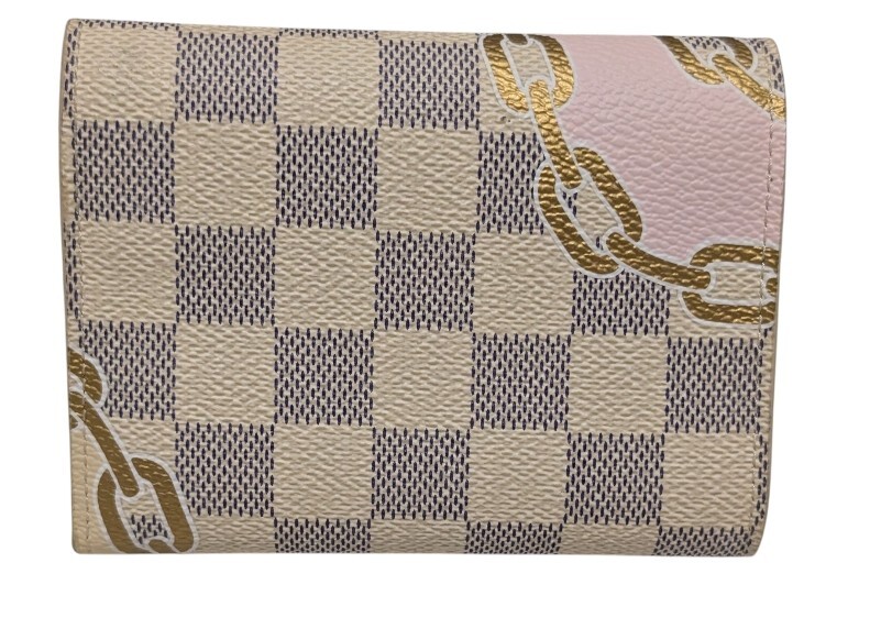 コメント・・・ルイヴィトンの定番人気“ダミエキャンバス”で仕立てられた『アズール・ポルトフォイユ・ヴィクトリーヌ』の入荷になります☆ピンクの入った色使いにチェーン柄がスタイリッシュなコンパクト財布になります♪