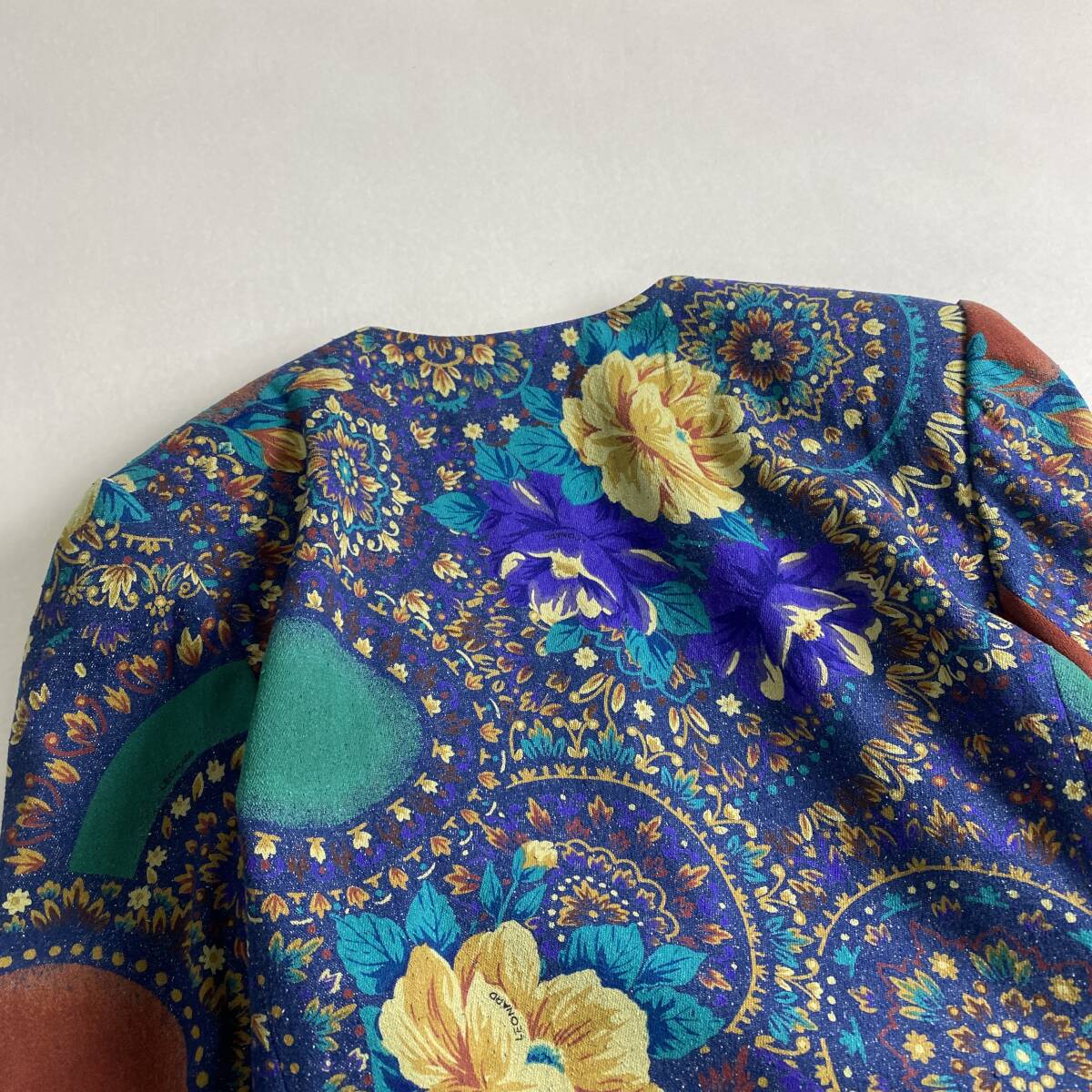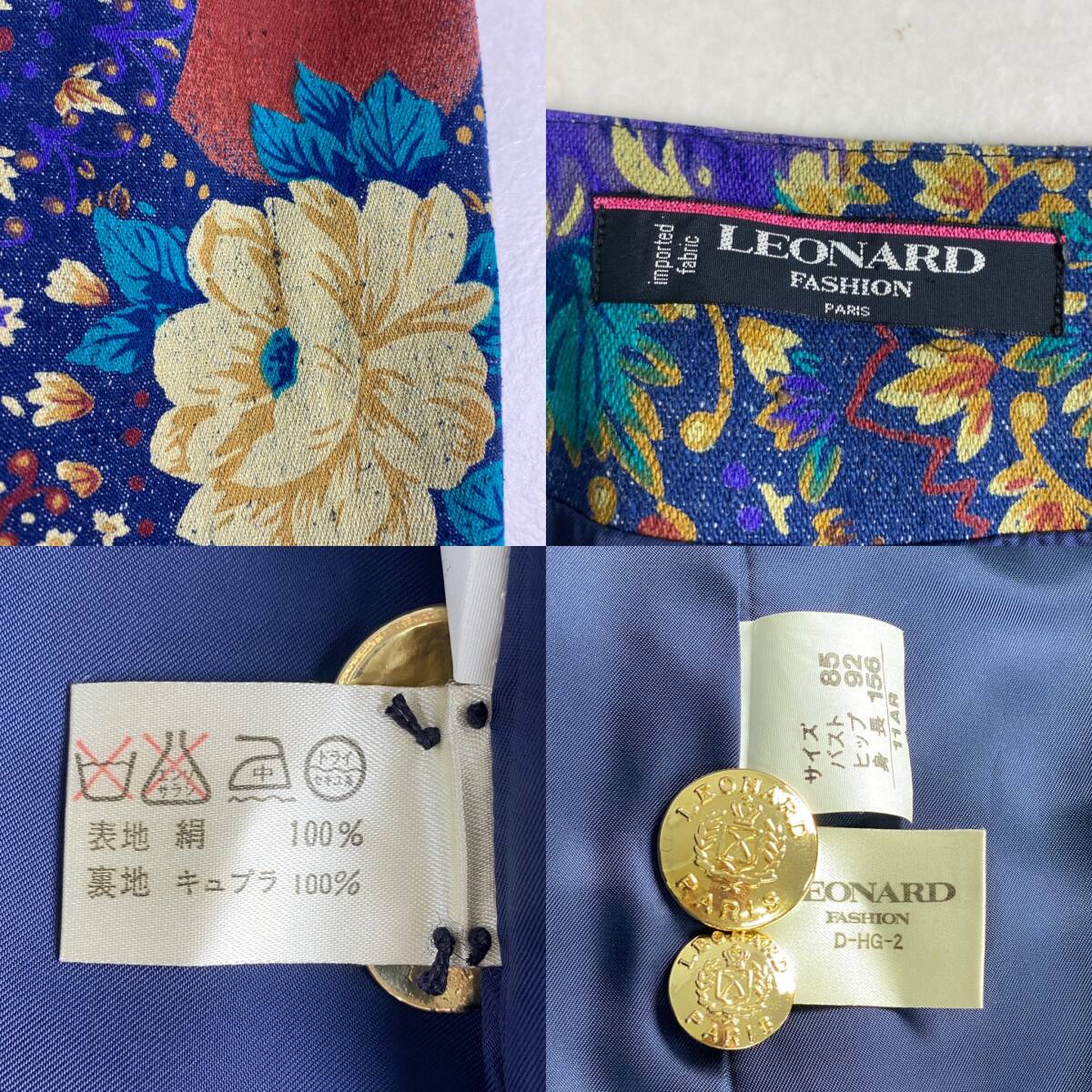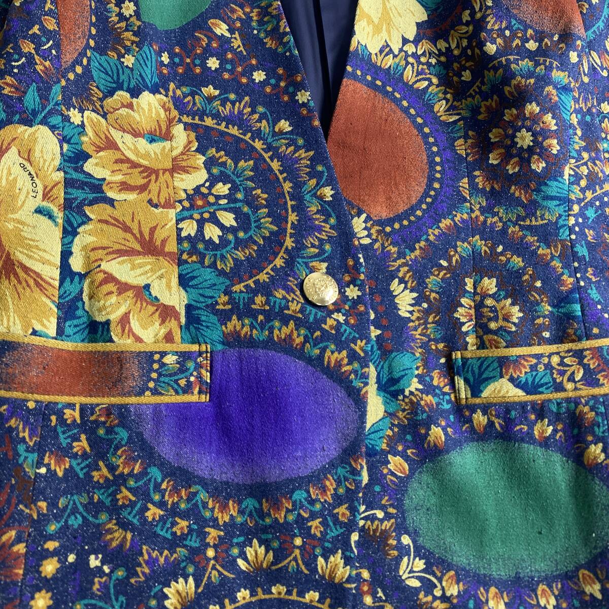 【ポイント】デニム 花柄 金ボタン L LEONARD シルク100% 11号