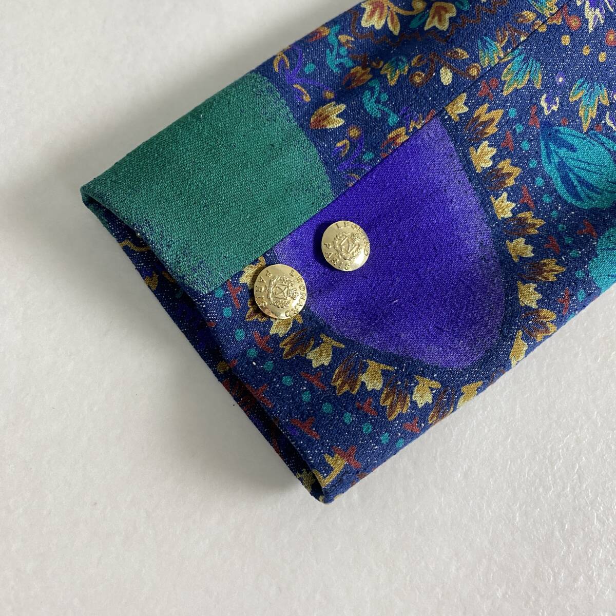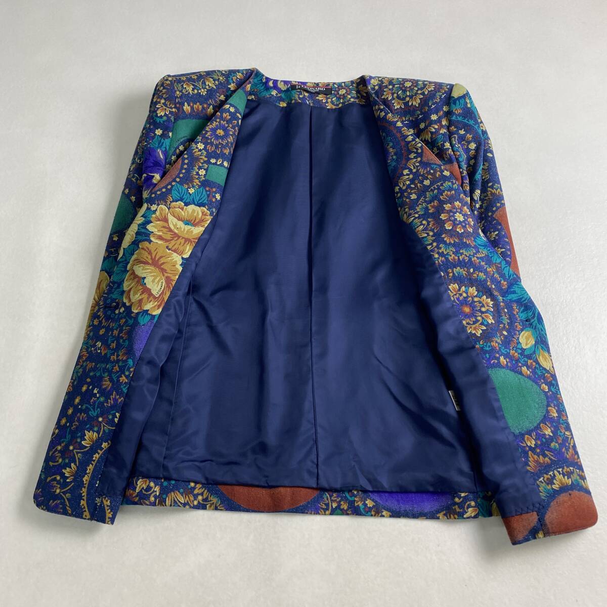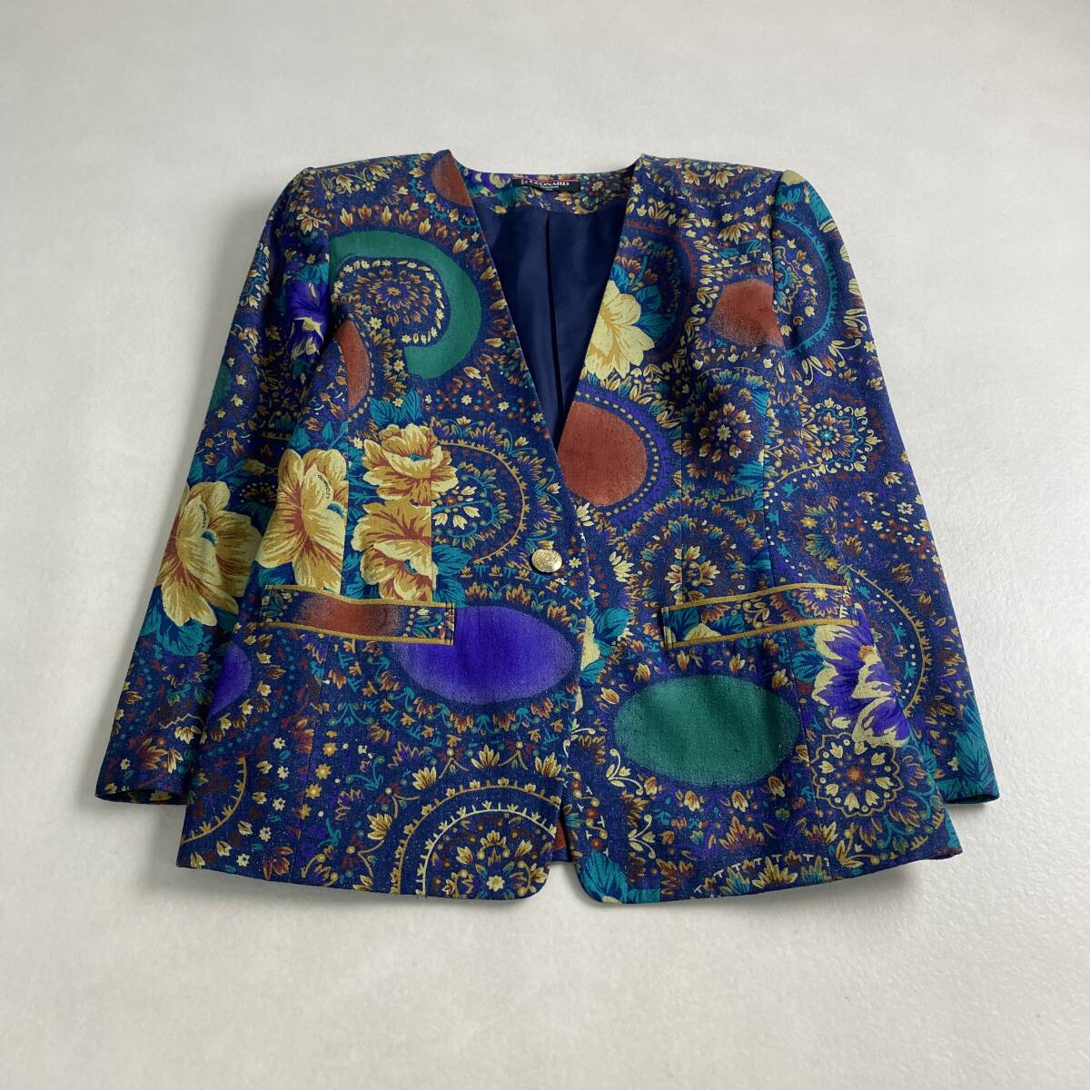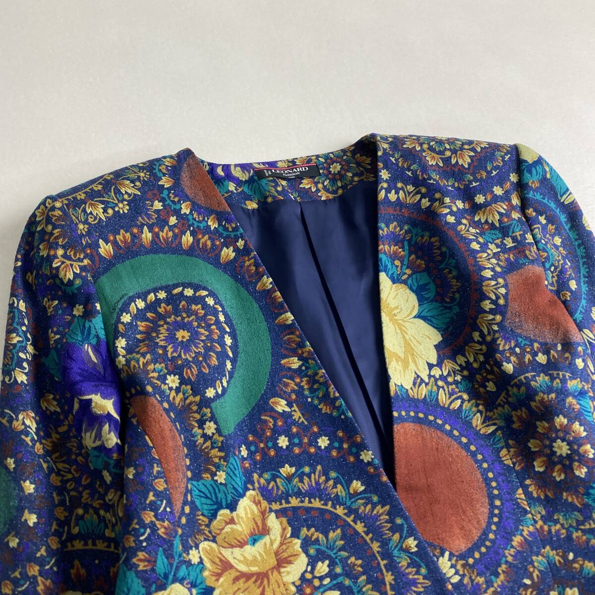 【ポイント】デニム 花柄 金ボタン L LEONARD シルク100% 11号