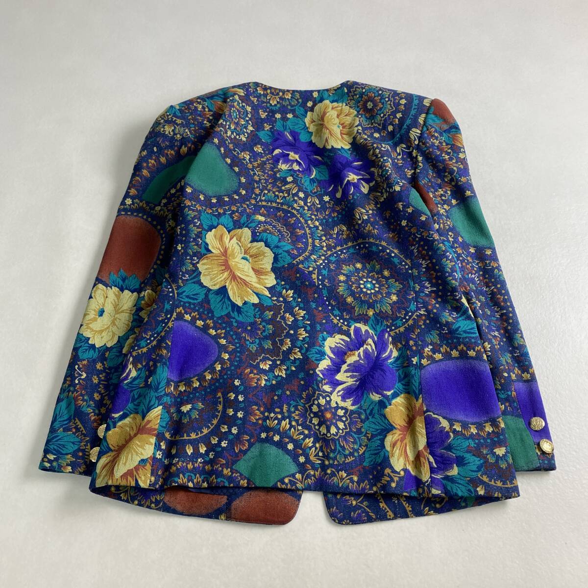 【状態】左肘ほつれ 黄色の花の所に伝線あり(写真を参考に)肩パッドあり