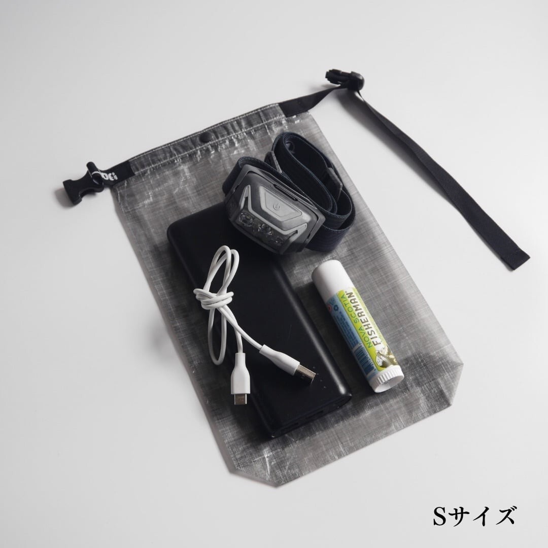 (例:靴下1セット、下着1枚、モバイルバッテリー等が入るサイズ感)