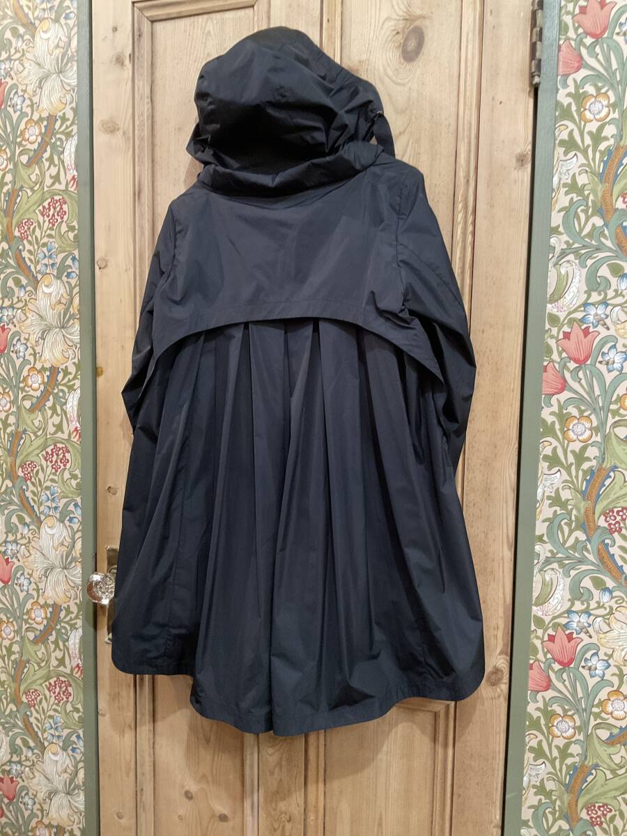 薄手の撥水ポリエステルのコートです。シルエットが本当にかわいいです!とても綺麗なコンディションです。サイズは40で身幅51.5肩幅40着丈85袖丈61cmほどです。よろしくお願いします!