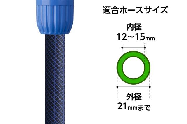 普通ホース(内径12-15mm/外径21mm)に対応。