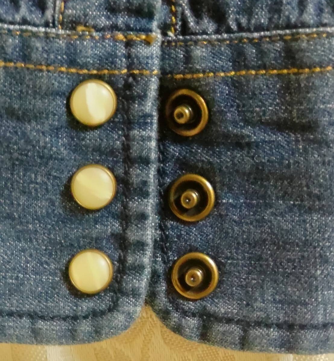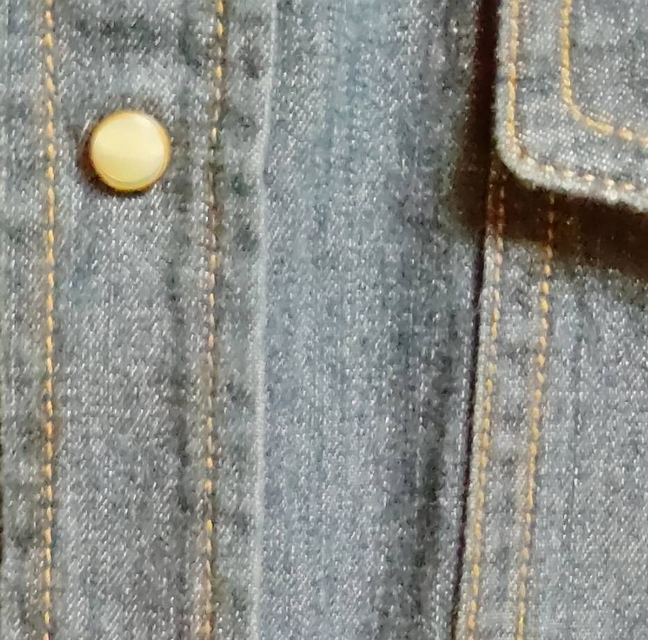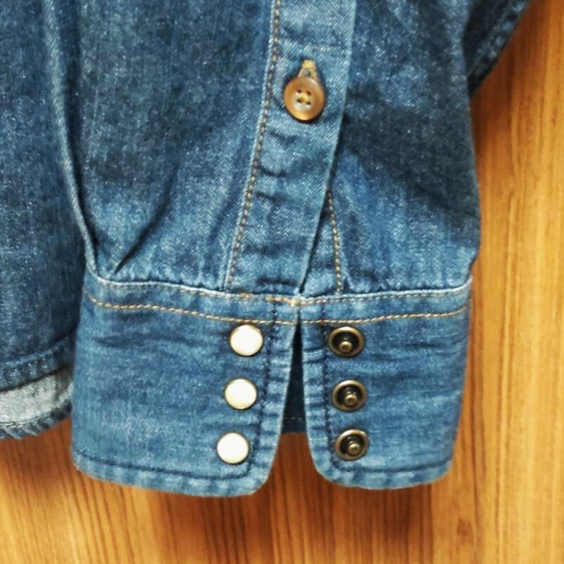 前側と袖のボタンは2種類で同じパターンに付けられていて、ちょっと洒落ています。(写真4~6枚目は光の加減で色が薄く写っています)