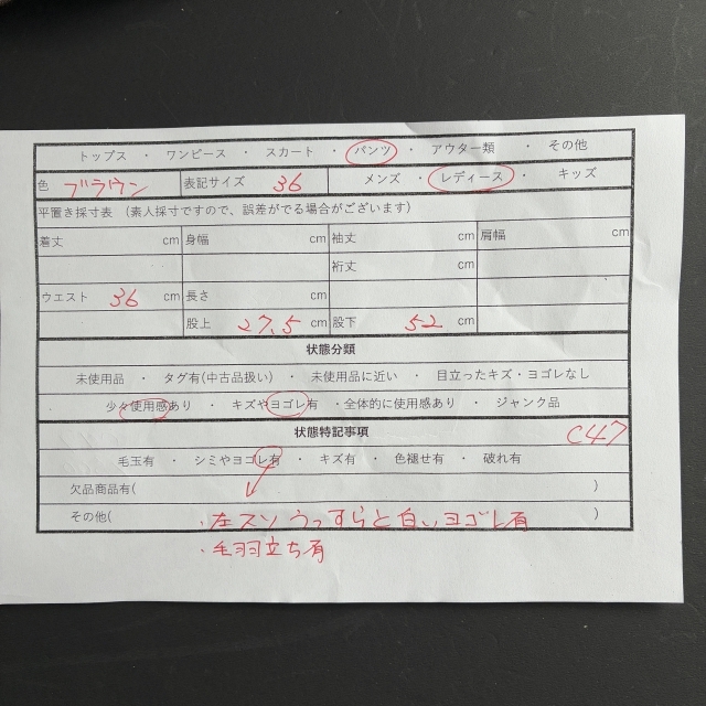・シミやヨゴレ有 (左スソうっすらと白いヨゴレ有)