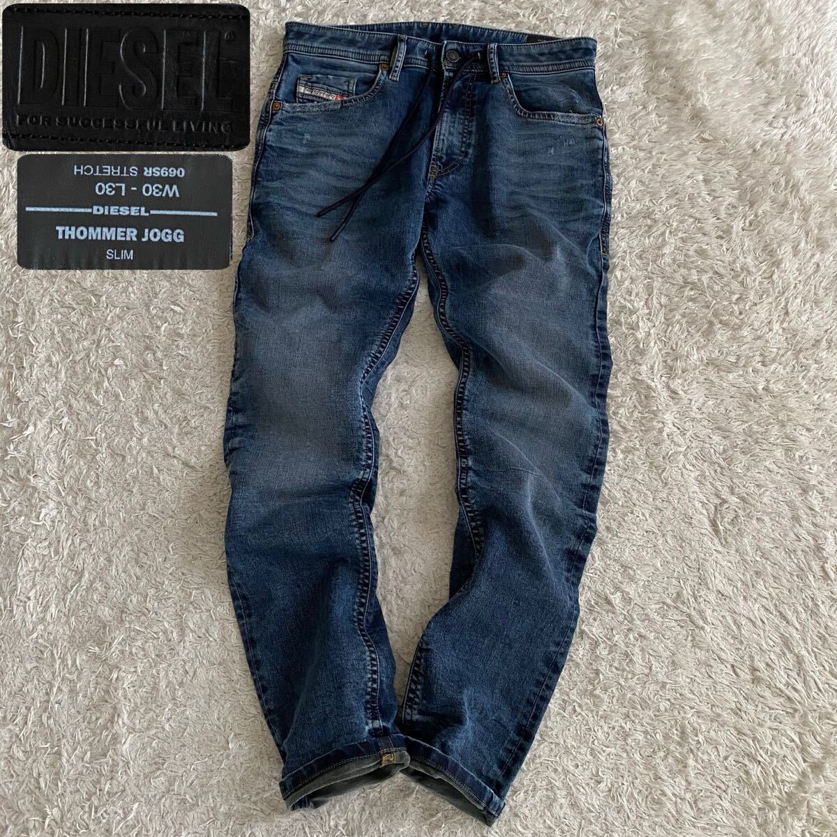 THOMMER 069SR JOGG JEANS ジョグジーンズ ダメージ加工 USED加工 ユーズド ヴィンテージ加工 ビンテージ クラッシュ グランジ 黒革パッチ ストレッチ タイト スキニー スリム スウェットパンツ ドローコード デニム ジーパン ジーンズ Gパン ボトムス 鬼ヒゲ 縦落ち ハチノス