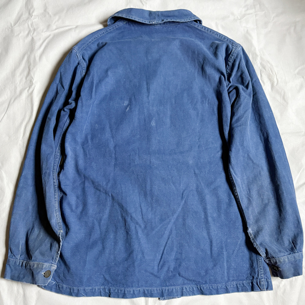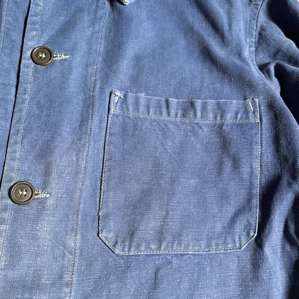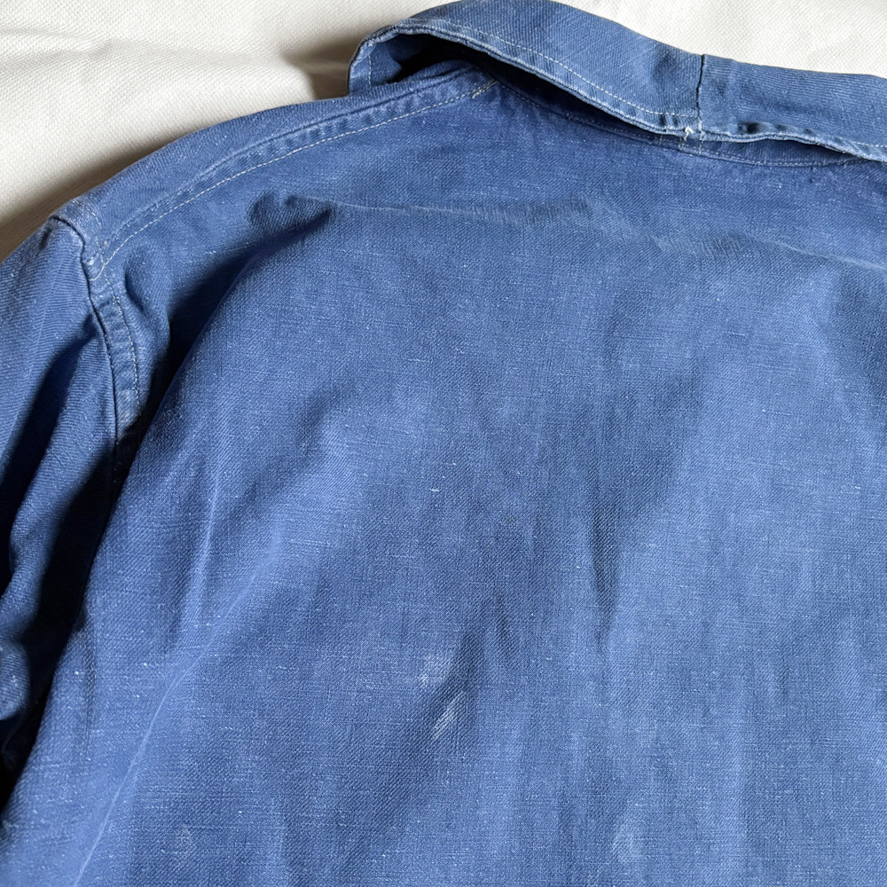 希少! 40's フレンチ メティス コットン リネン ワーク ジャケット french metis cotton linen work jacket big ビッグ ナス紺 ブルー blue