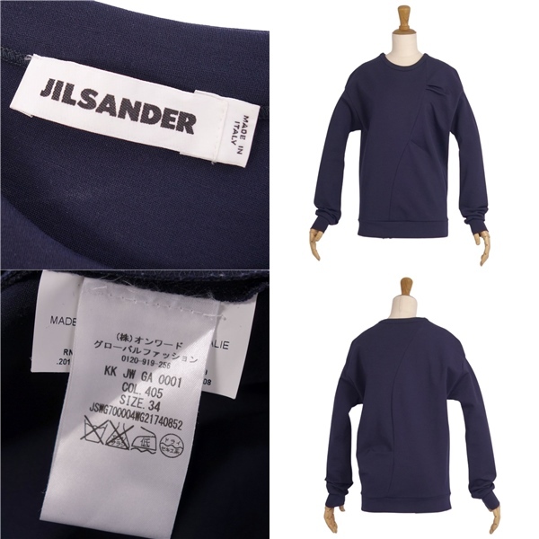 | 美品 ジルサンダー JIL SANDER ウール スウェット 長袖 ウールジャージートップス レディース 34(S相当) ネイビー |