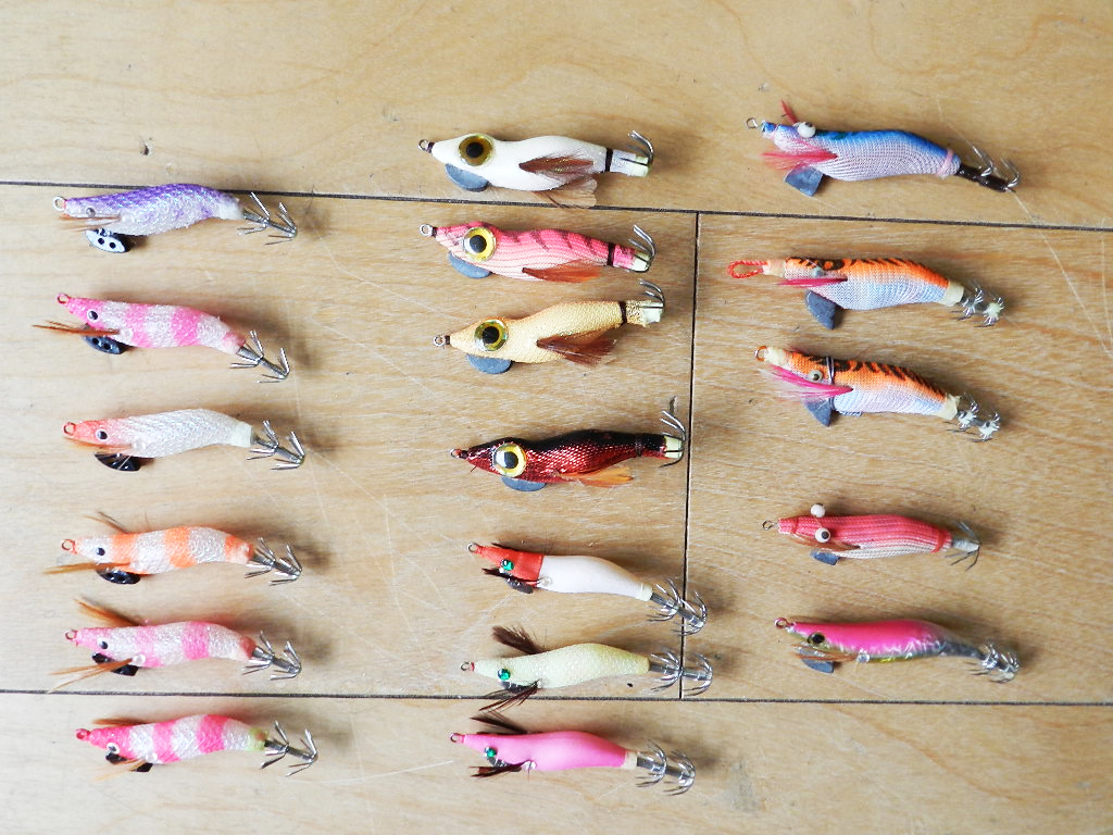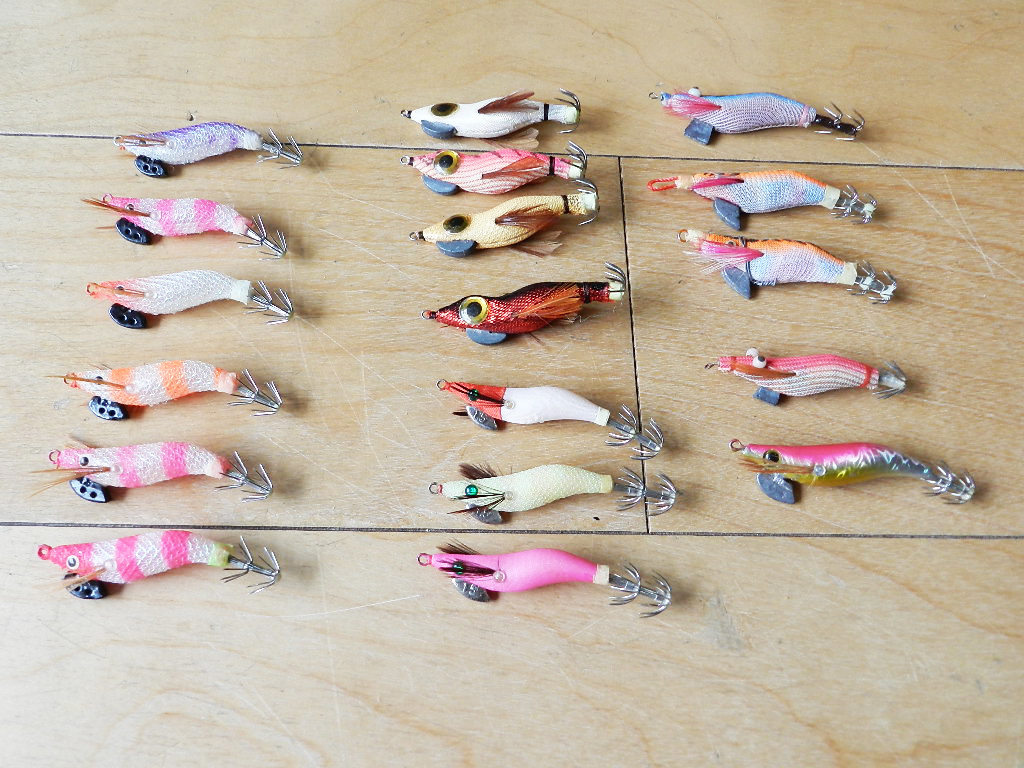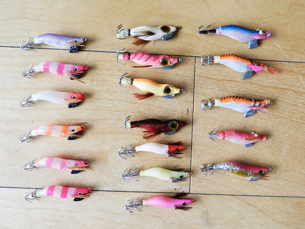 名前の分からないエギ 1.8号以下18本①(チビエギ、ミニエギ、ヒイカ、シンコ、サイト、スッテ、ドロッパー)☆クリックポスト185円☆