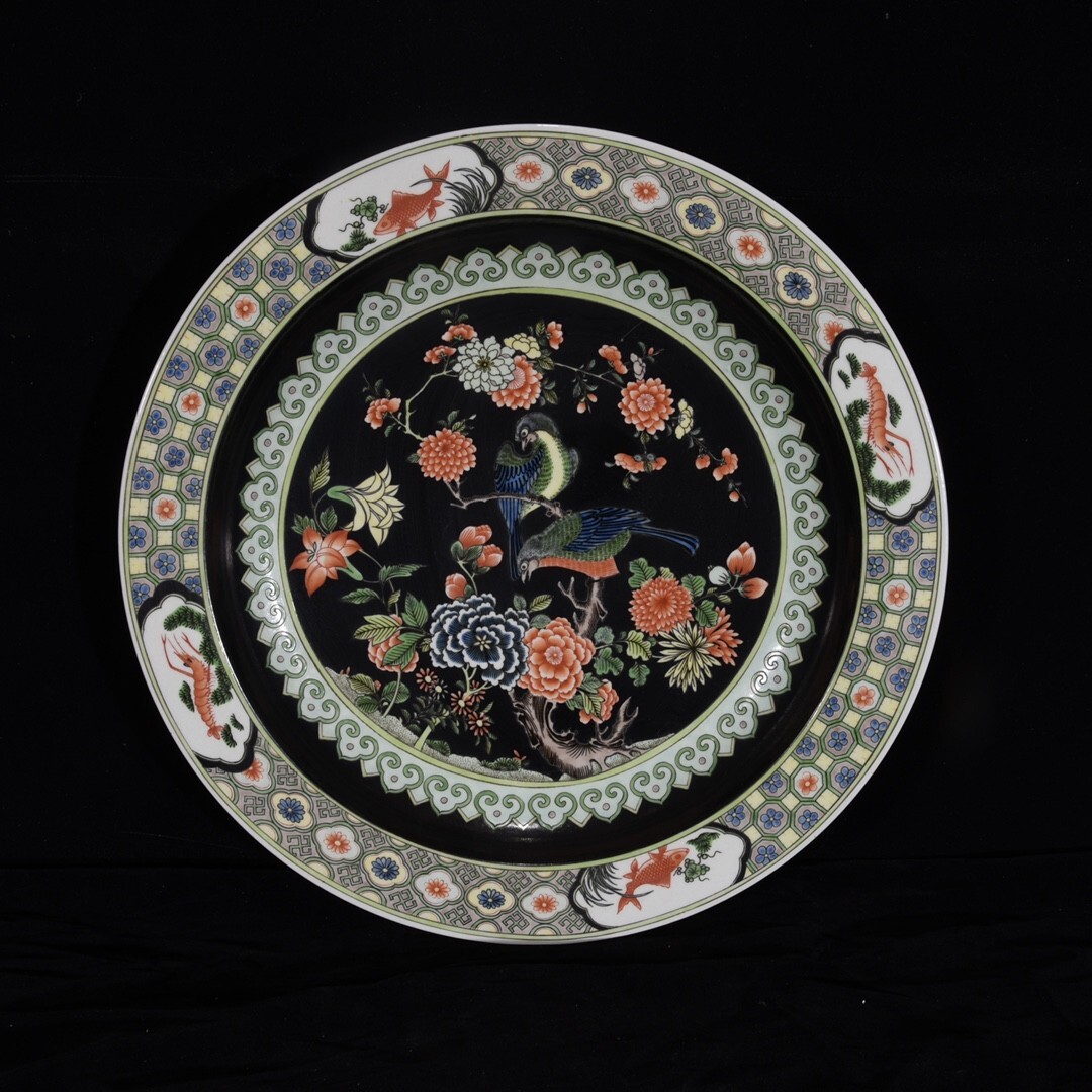 【永】清時代 大清康熙年製 花鳥牡丹紋大盤 古陶磁器 陶芸 皿 中国陶瓷器 唐瓷 置物擺件 古美術品 古賞物 収集 旧家蔵出 中国唐物 A9862