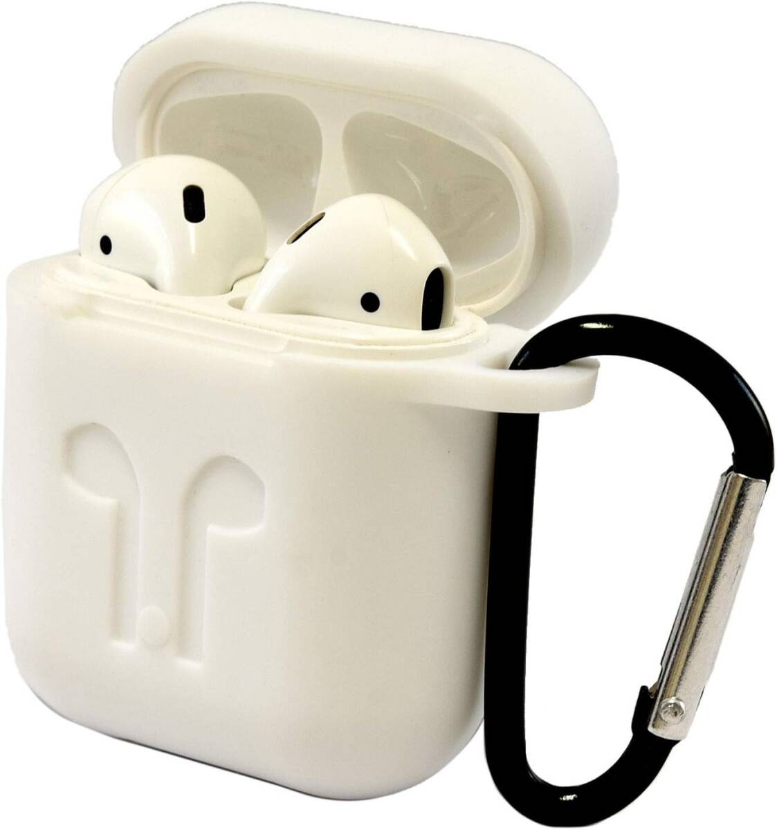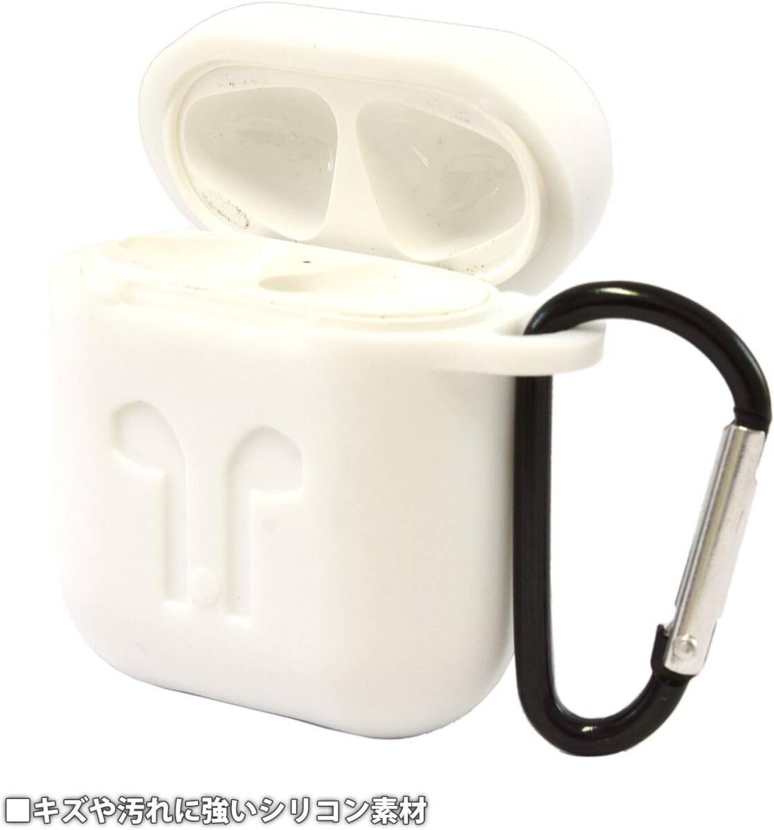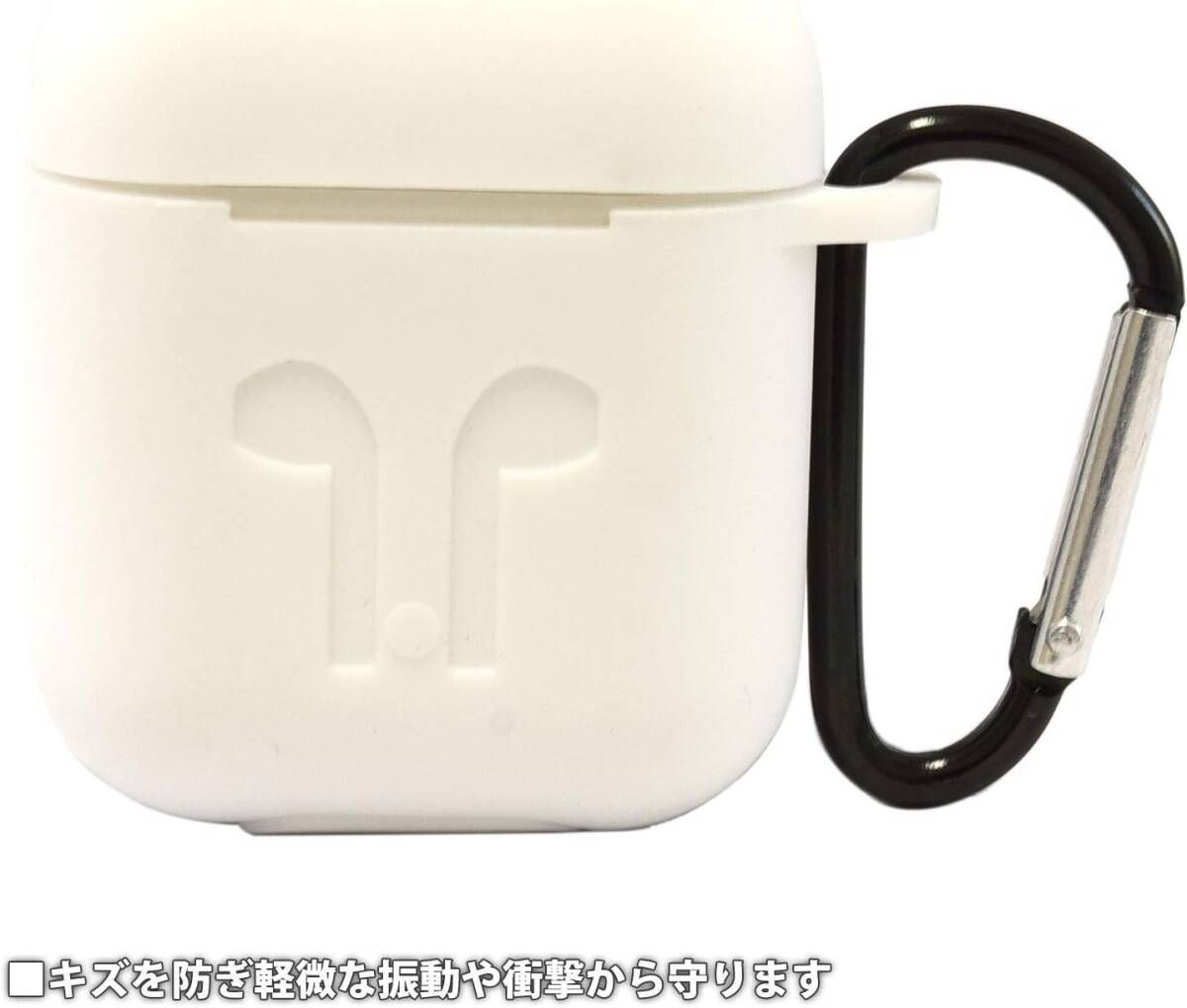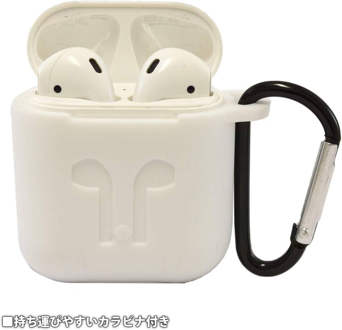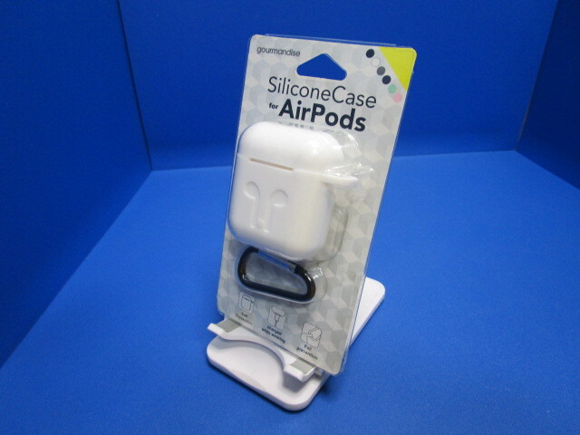 グルマンディーズ AirPods (第2世代) AirPods (第1世代) 対応 シリコンケース ホワイト カラビナ付属