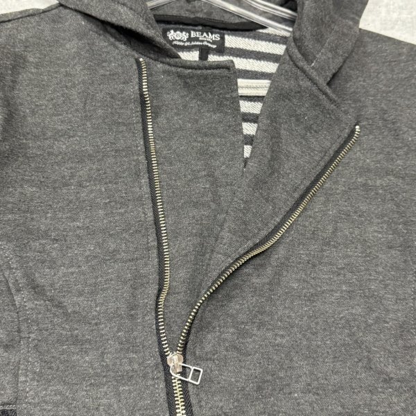 BEAMS フーディー スウェット ライダース Wライダースタイプ ビームス  フーデッドトレーナー ボーダー裏地 ダブルジッパー 石瀬7542