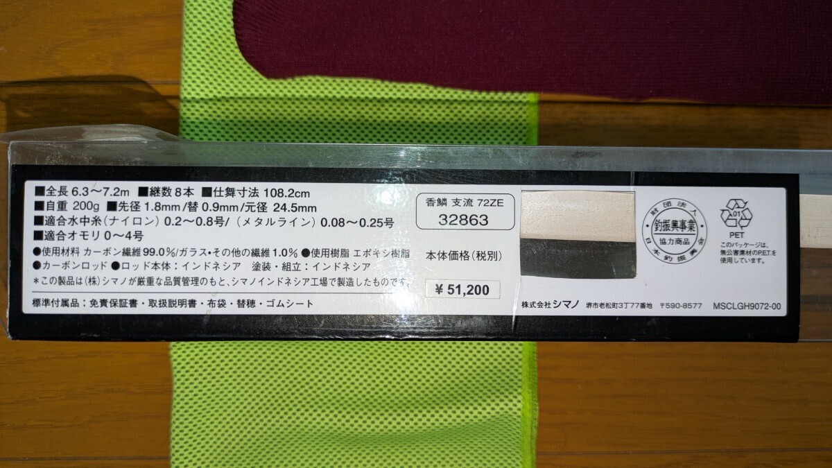 シマノの支流用鮎竿、香鱗63-72、ズームモデルです。