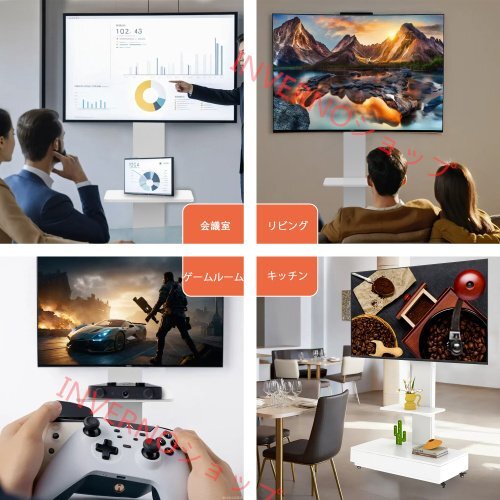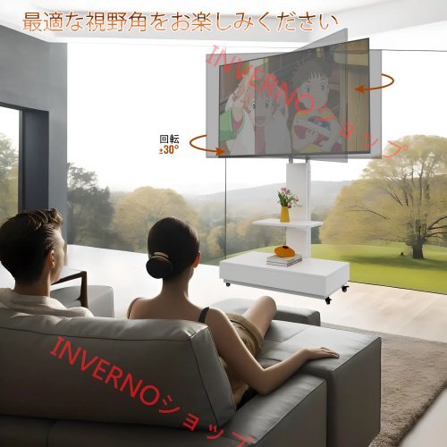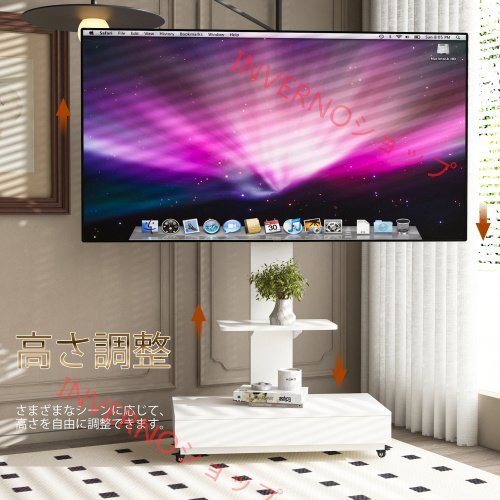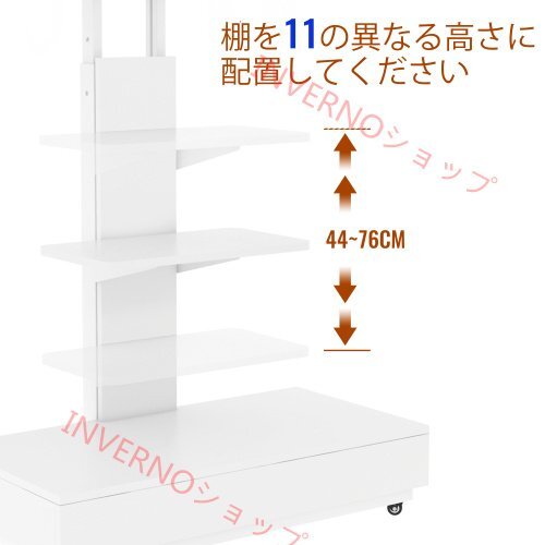 ホワイト 引き出し付きTVスタンド|32-75インチ対応 高さ調整可能|キャスター付き 可動式|リビング・寝室・オフィス用