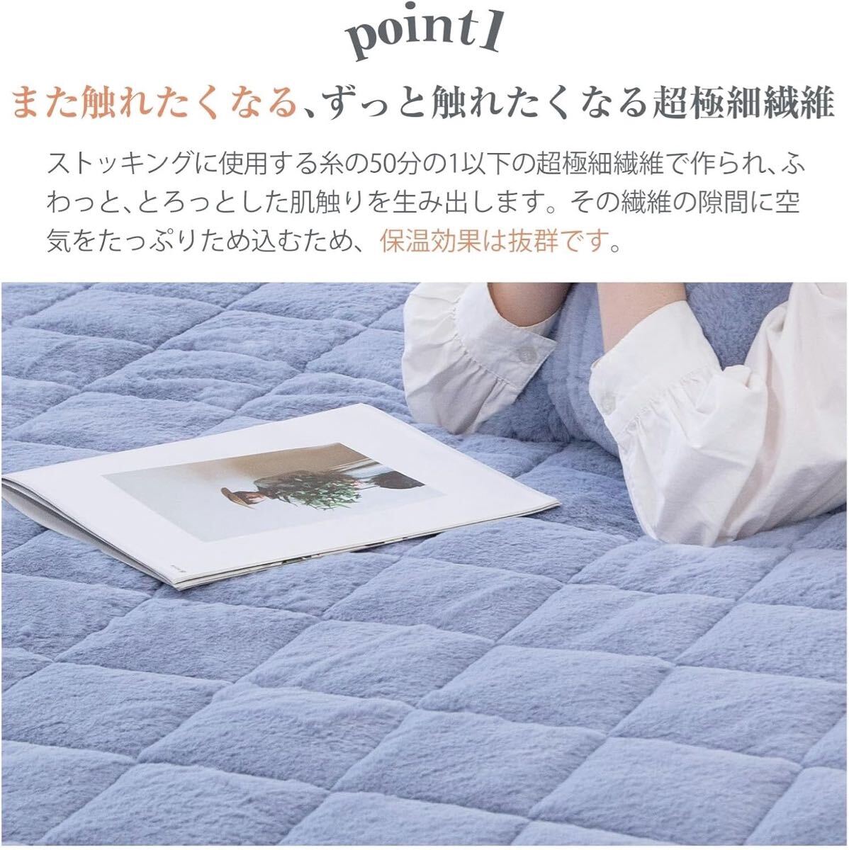 ウサギの毛に着想を得た超細長繊維を使用し、本物のファーのようなふんわりとした柔らかさで肌を優しく包み込み、心身を温めます