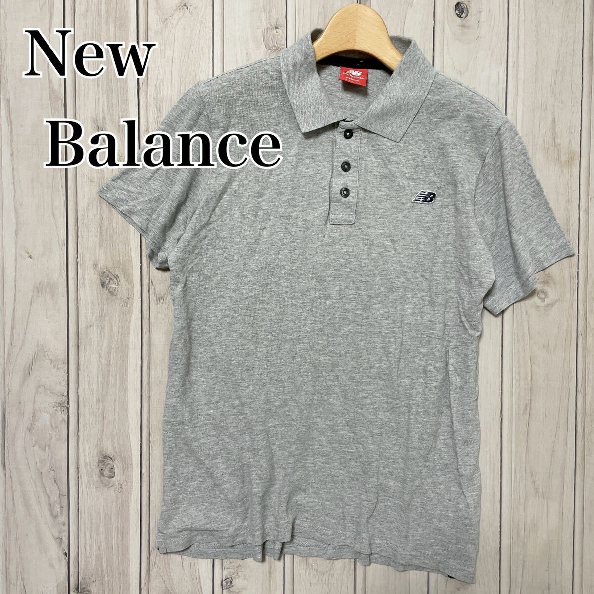 New Balance ニューバランス 半袖 ポロシャツ トップス メンズ Mサイズ M グレー スポーツ ボタン ロゴ入り エンブレム