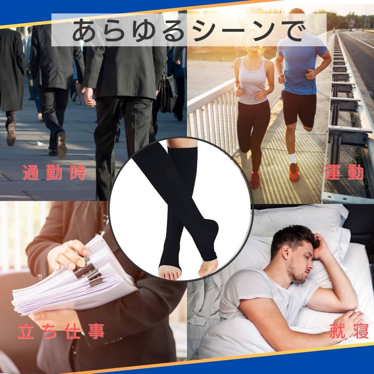 ☆足先オープンデザイン☆足首周り:14~19センチ☆ふくらはぎ周り:25~31センチ☆長さ:41~42センチ(多少の誤差はご了承ください)☆サイズ:S/Mシンプルでスタイリッシュなブラックの着圧ソックスが1セット!洗練されたデザインで、どんなシーンにも合わせやすいアイテムです。仕事や家事で疲れた足や、冷房で冷えてしまった足にぴったり。「頭寒足熱」の考え方に基づき、脚を温めることで健康をサポートします。むくみを解消し、毎日をもっと快適に過ごしませんか?快適な着圧ソックスで、毎日の生活をサポートします!