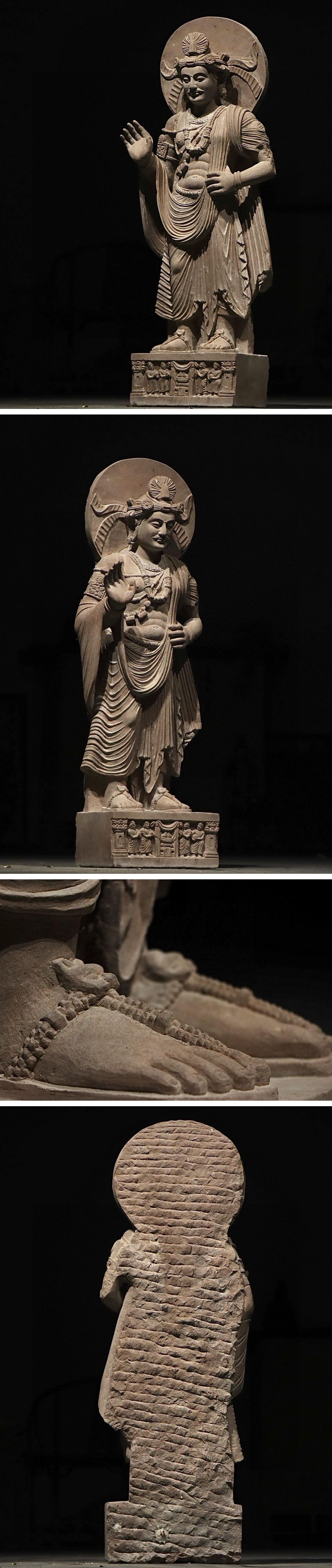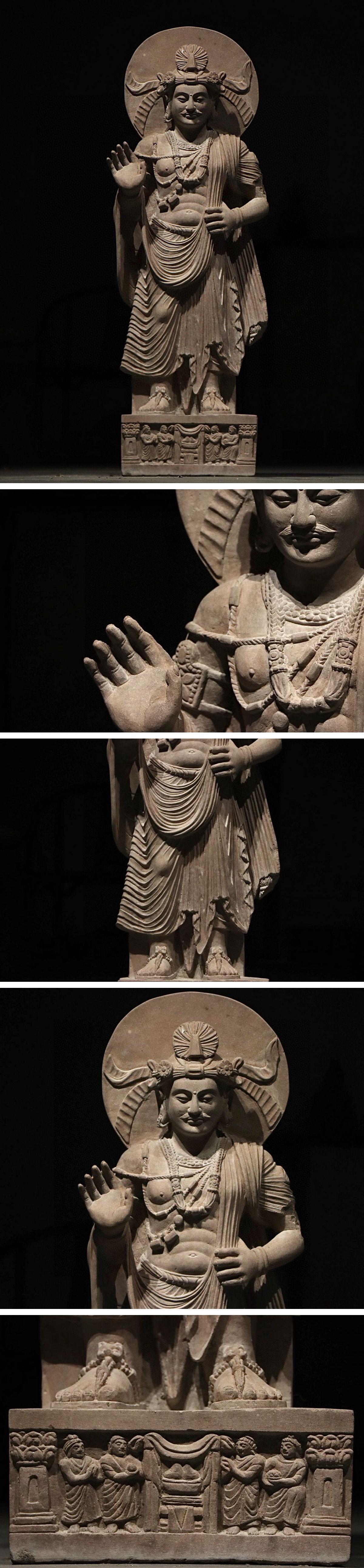 【清】某有名オークション購入 時代物 灰色片岩 釈迦王子ガンダーラ造像 材質保証 時代物保証 古置物 古美術 時代コレクション7L9-GHR30