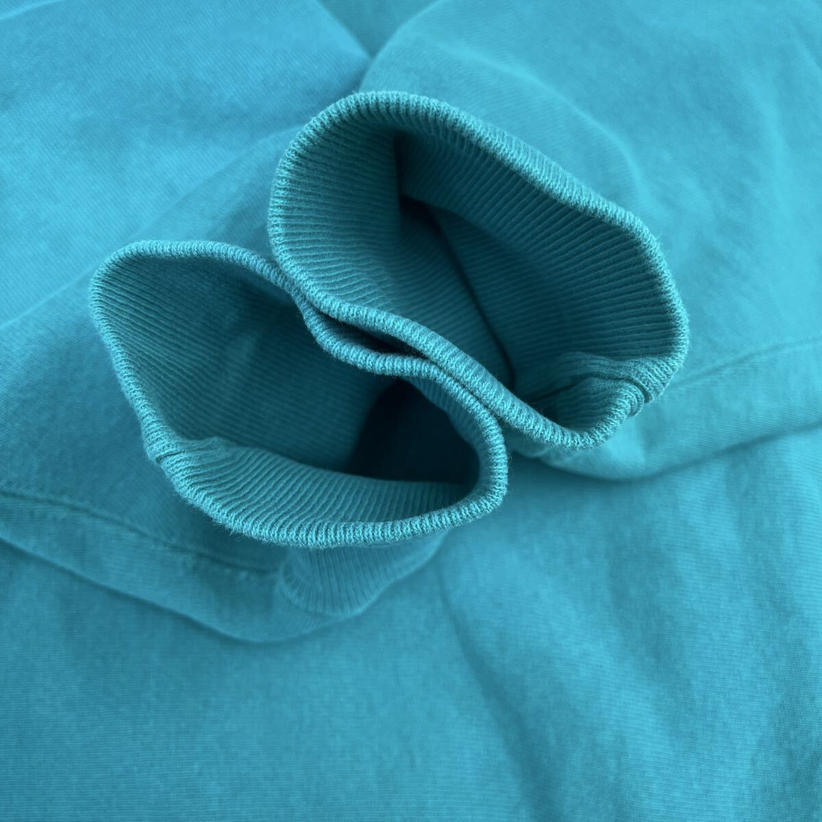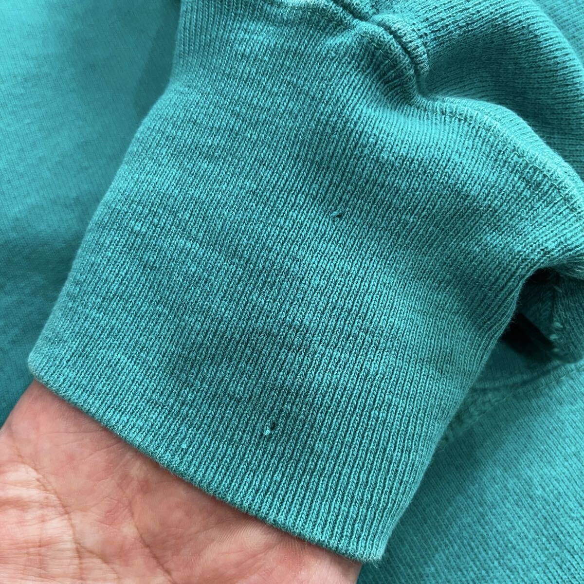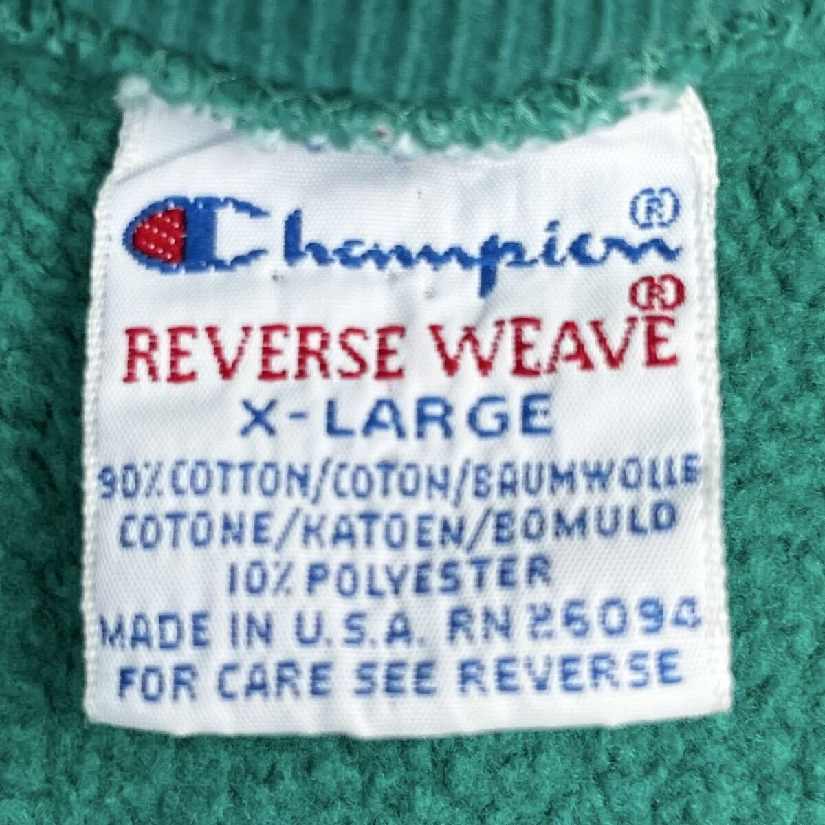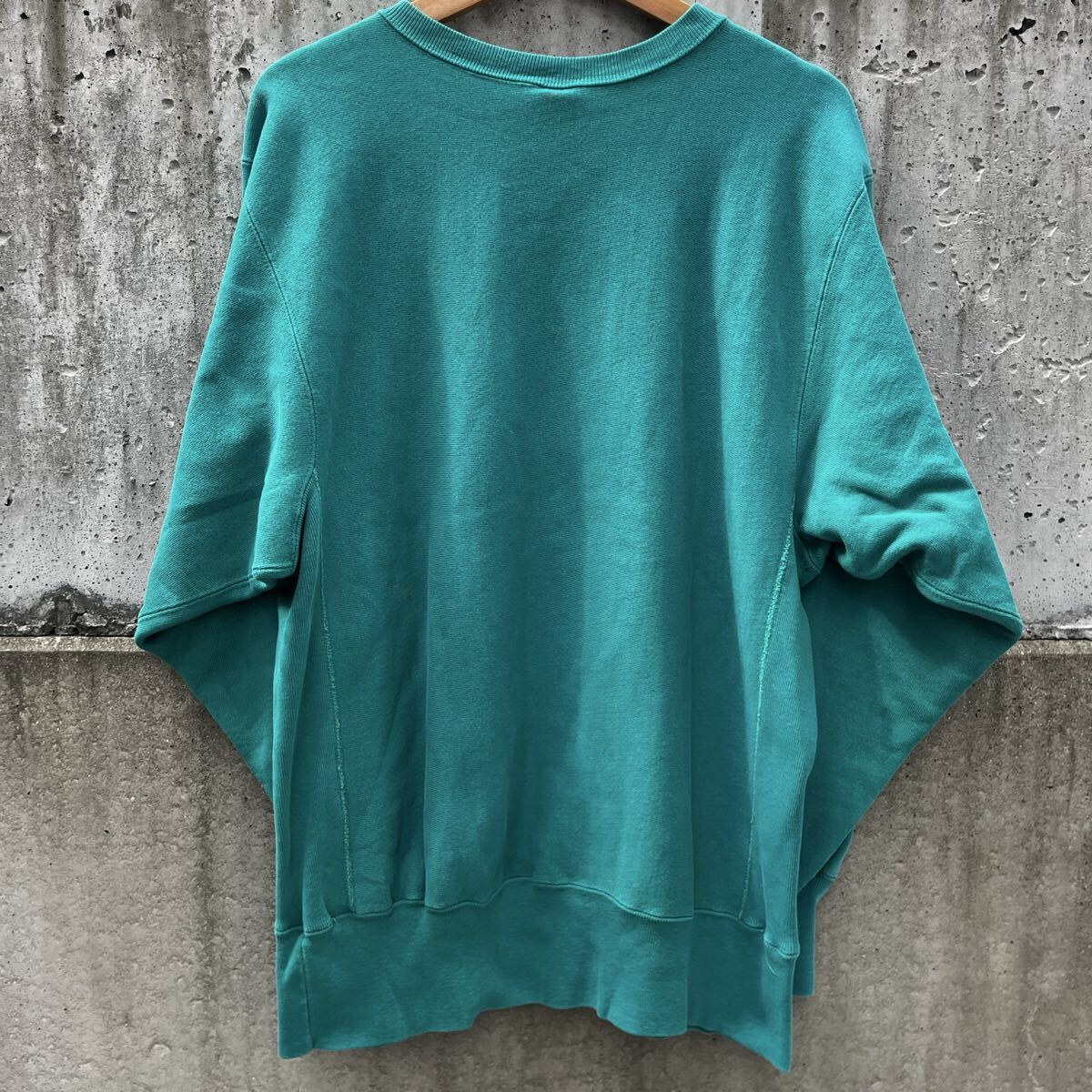 90s(90年代)チャンピオン(Champion)のリバースウィーブ(Reverse Weave)ヴィンテージです。人気のUSA製になります。タグは刺繍タグです。リバースウィーブにはカレッジプリントやラバープリント、染み込みプリントや無地などバリエーションが豊富で、様々なスタイルを楽しむことが出来ると思います。カラーはティファニーブルーのようなカラーで、白縁のイエローのラバープリントがクールです。サイズはXLサイズです。ビックサイズ、ゆるダボなリバースウィーブなので人気があると思います。ビンテージの古着になるので、それなりに使用感はありますが、古着慣れしている人なら問題ないと思います。カラーも良く、ラバープリントは割れなどなく、ビンテージらしい良い雰囲気の一枚です。