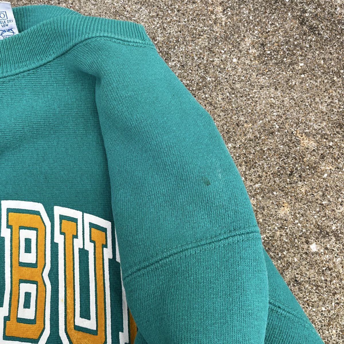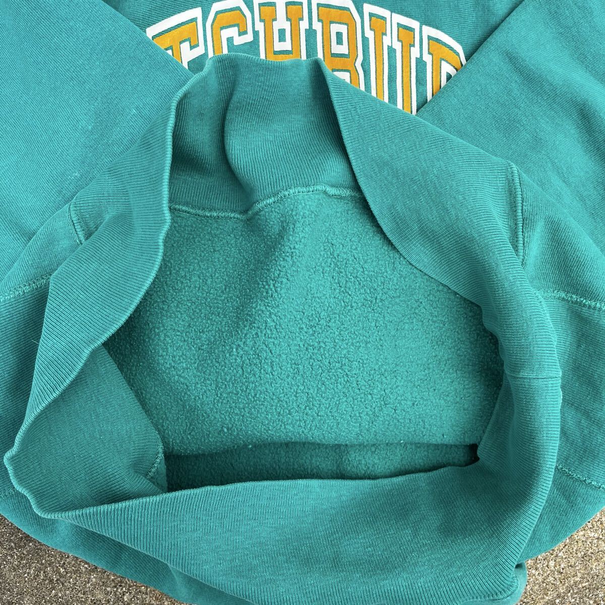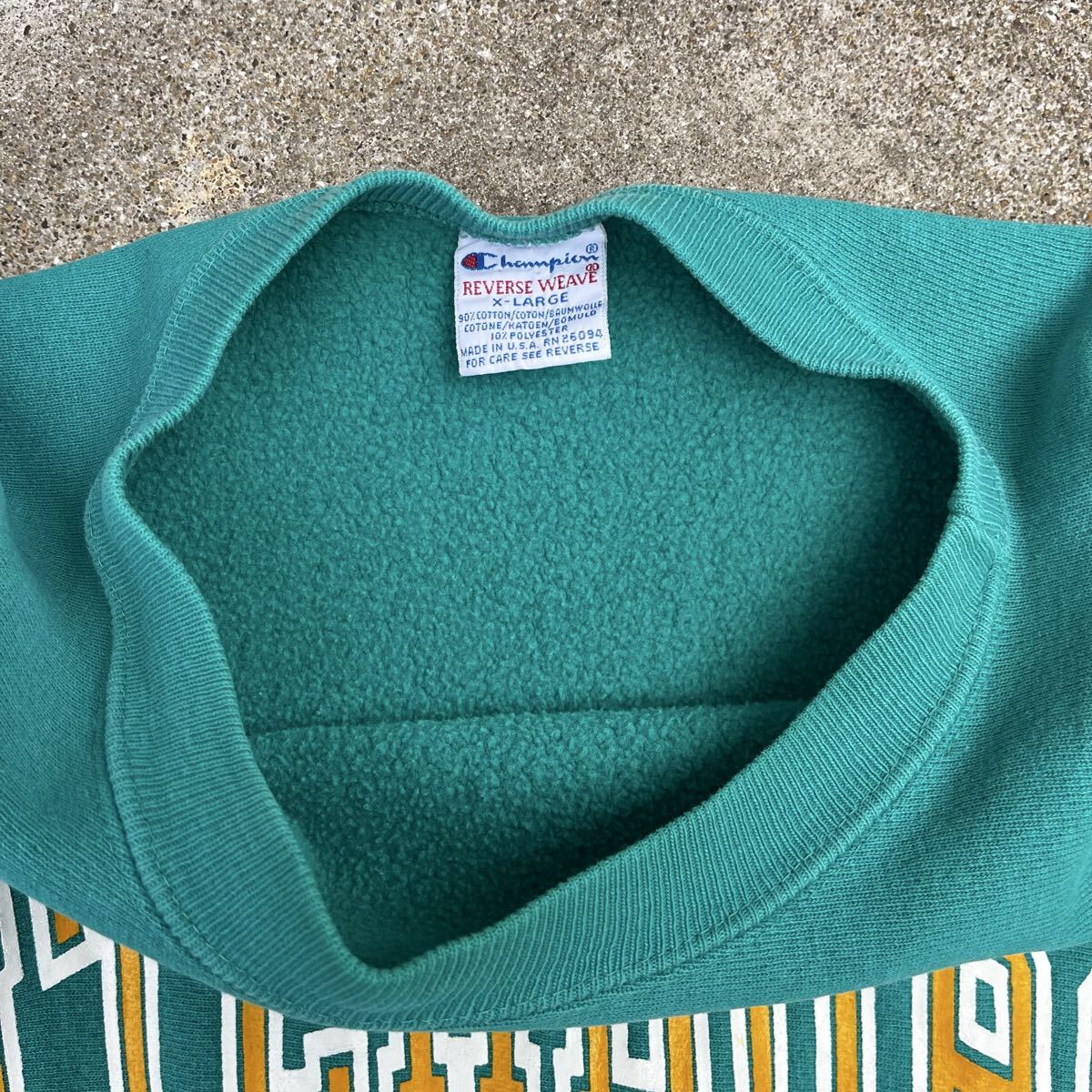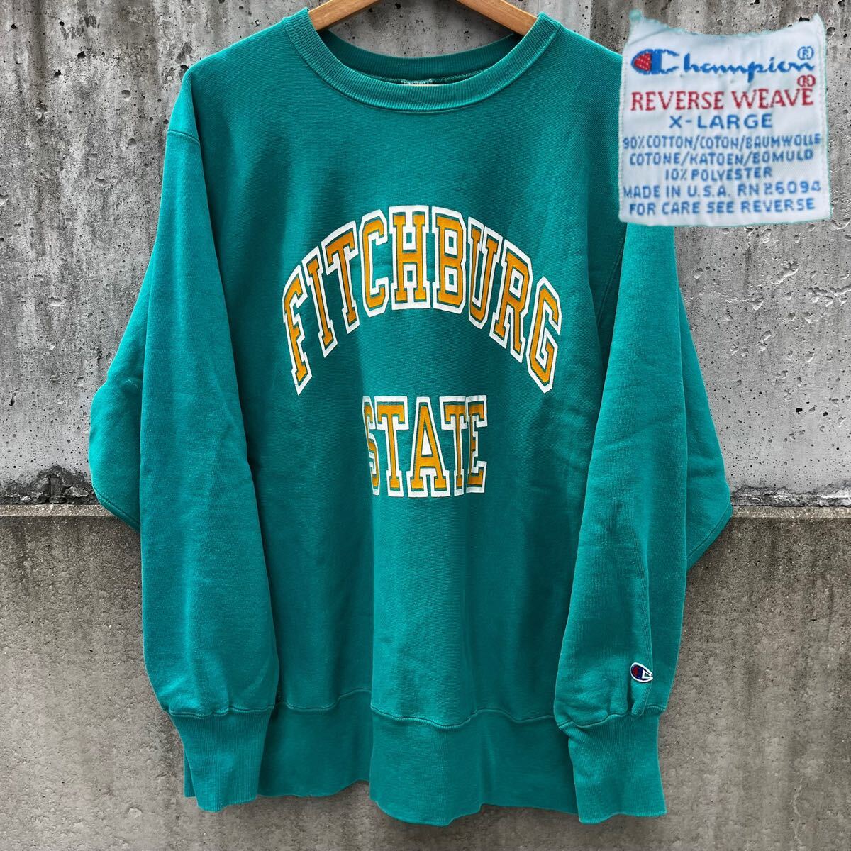 90s(90年代)チャンピオン(Champion)のリバースウィーブ(Reverse Weave)ヴィンテージです。人気のUSA製になります。タグは刺繍タグです。リバースウィーブにはカレッジプリントやラバープリント、染み込みプリントや無地などバリエーションが豊富で、様々なスタイルを楽しむことが出来ると思います。カラーはティファニーブルーのようなカラーで、白縁のイエローのラバープリントがクールです。サイズはXLサイズです。ビックサイズ、ゆるダボなリバースウィーブなので人気があると思います。ビンテージの古着になるので、それなりに使用感はありますが、古着慣れしている人なら問題ないと思います。カラーも良く、ラバープリントは割れなどなく、ビンテージらしい良い雰囲気の一枚です。