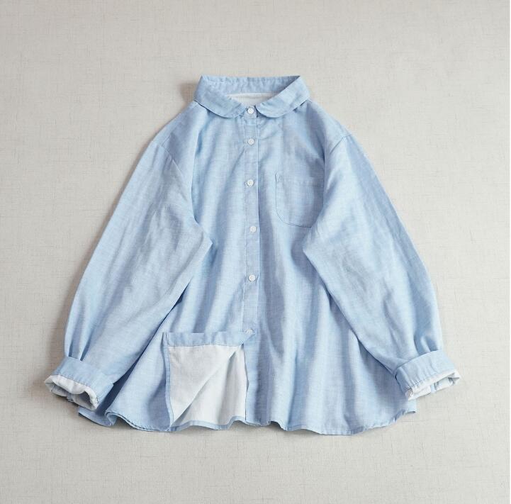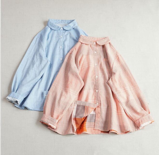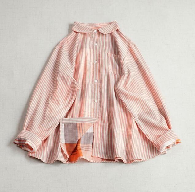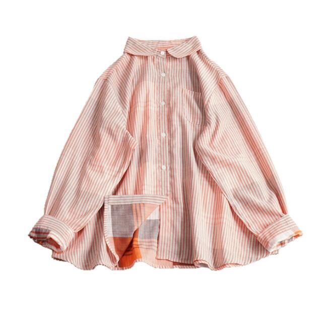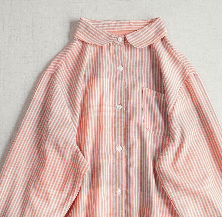 新入荷チュニック トップス 上着 ダブルガーゼ ストライプ柄 綿100% 大人可愛 シャツ オシャレ フリーサイズ ブラウス