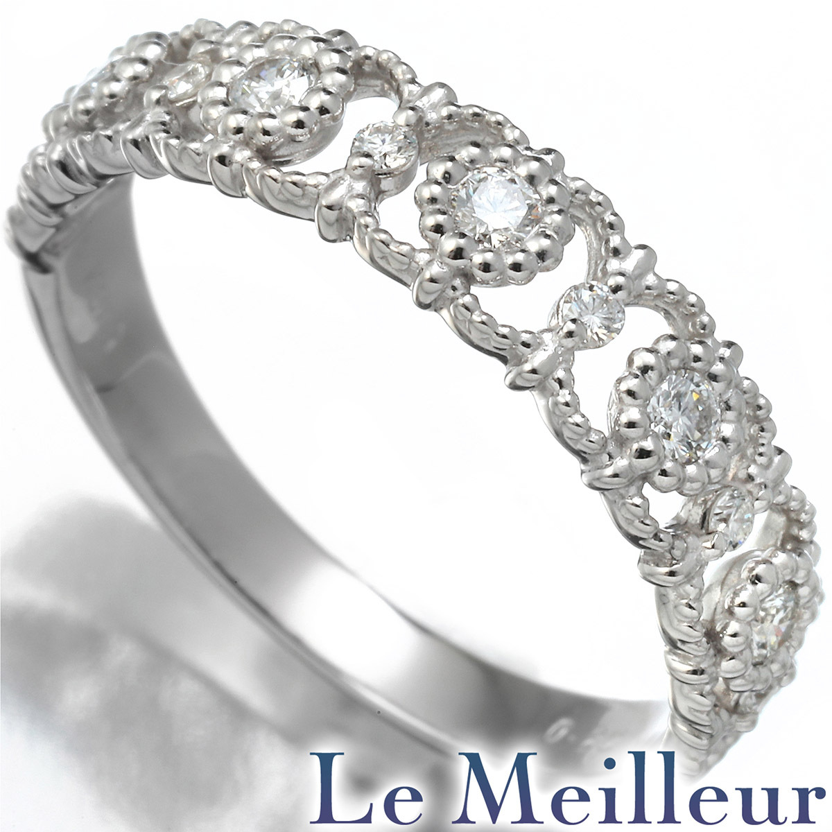 透かし 透かし模様 フェミニン 上品 普段使い デイリー デザインリング ファッション 4月 誕生石 ダイア ラウンド 伏せ込み 18金 WG 20代 30代 40代 50代 60代 70代 USED ユーズド 中古 リユース リング・指輪 LEI7777