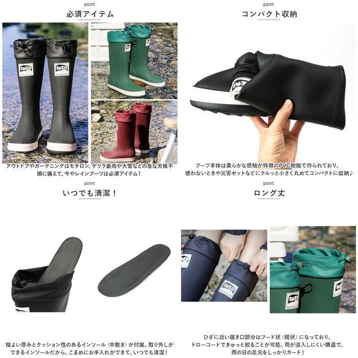 | 商品説明 | ・・アウトドアからガーデニングまでスタイリッシュに履ける♪男女兼用「レインブーツ」の登場。 ・【ユニセックスで使える】 ・フロントのロゴがアクセント★無地でシンプルなデザインがスタイリッシュにキマル。サイズ展開も広く、ユニセックスで使えるので家族でシェアもOK。 ・【必須アイテム】 ・アウトドアやガーデニングはモチロン、ゲリラ豪雨や大雪などの急な天候不順に備えて、今やレインブーツは必須アイテム! ・【コンパクト収納】 ・ブーツ本体は柔らかな感触が特徴のPVC樹脂で作られており、使わないときや災害セットなどにクルッと小さく丸めてコンパクトに収納♪ ・【いつでも清潔!】 ・程よい厚みとクッション性のあるインソール(中敷き)が付属。取り外しができるインソールだから、こまめにお手入れができて、いつでも清潔! ・【ロング丈】 ・ひざに近い履き口部分はフード状(幌状)になっており、ドローコードできゅっと絞ることが可能。雨が浸入しにくい構造で、雨の日の足元をしっかりガード! |