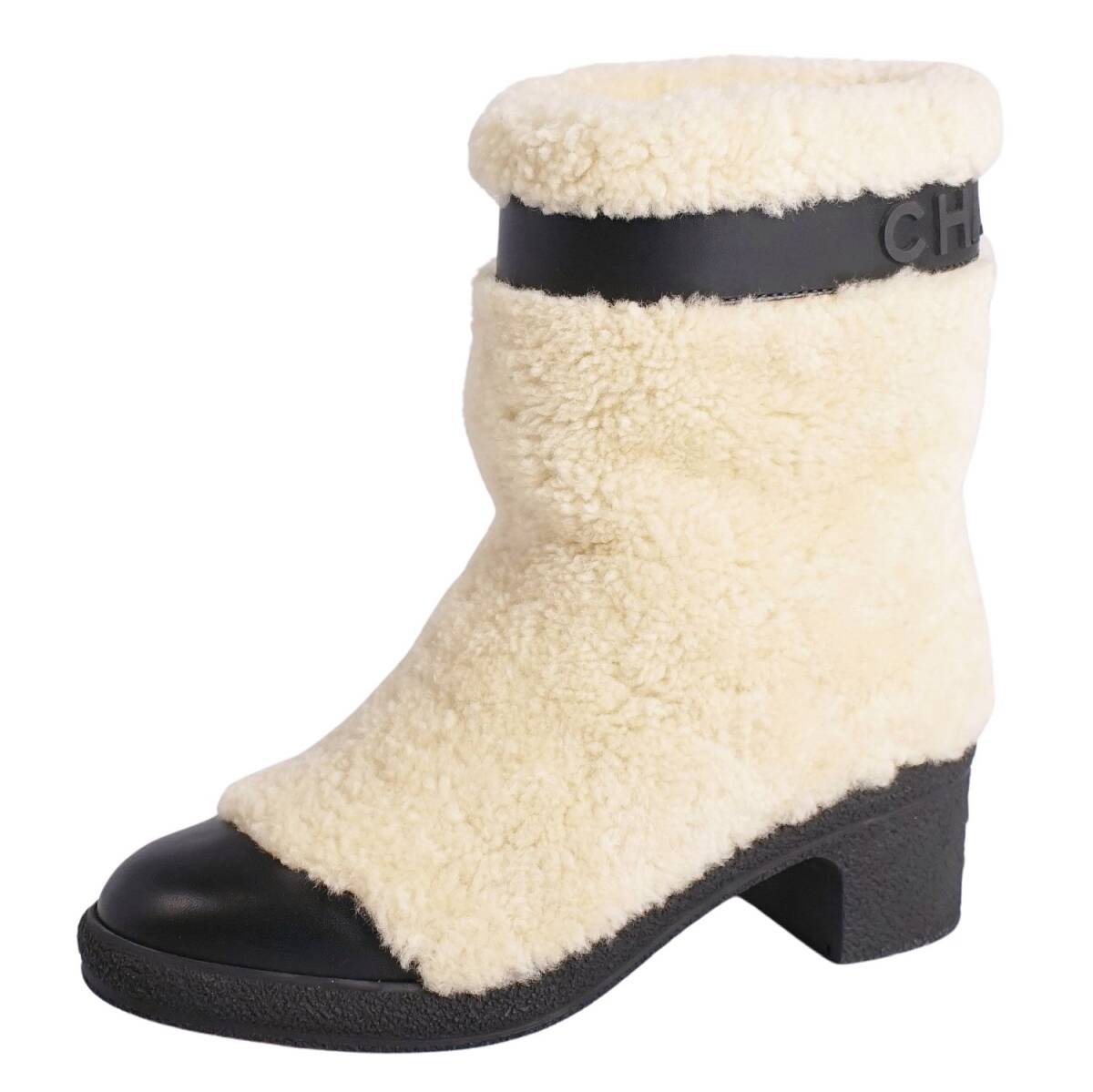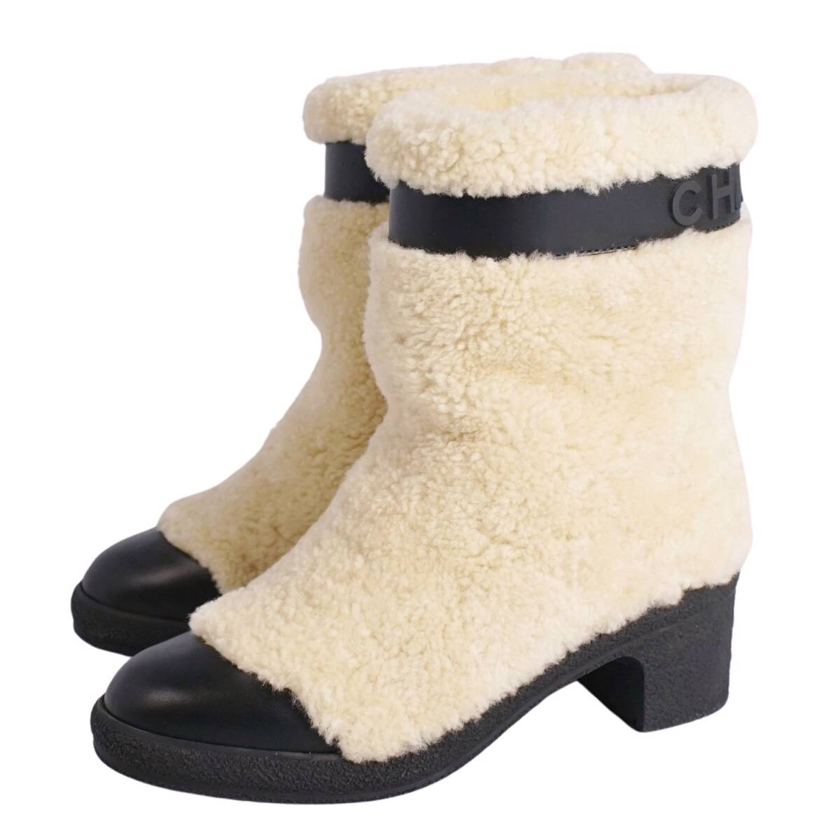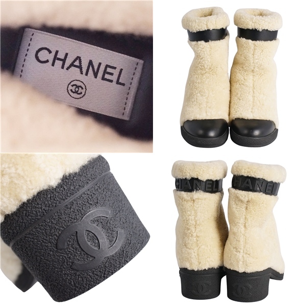 | 未使用 シャネル CHANEL ブーツ ショートブーツ ムートン ロゴ シューズ 靴 レディース イタリア製 37C ホワイト |