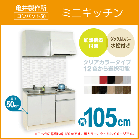 ★ 亀井製作所 ミニキッチン コンパクト50(扉カラー:クリア) 間口105cm フルタイプ ★