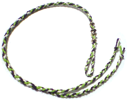 輪に分岐の1本を通し、もう一方と結んで留めるタイプです。