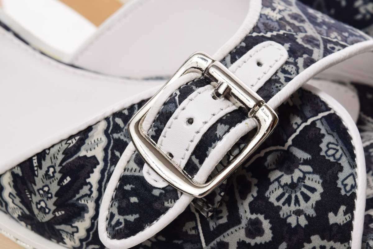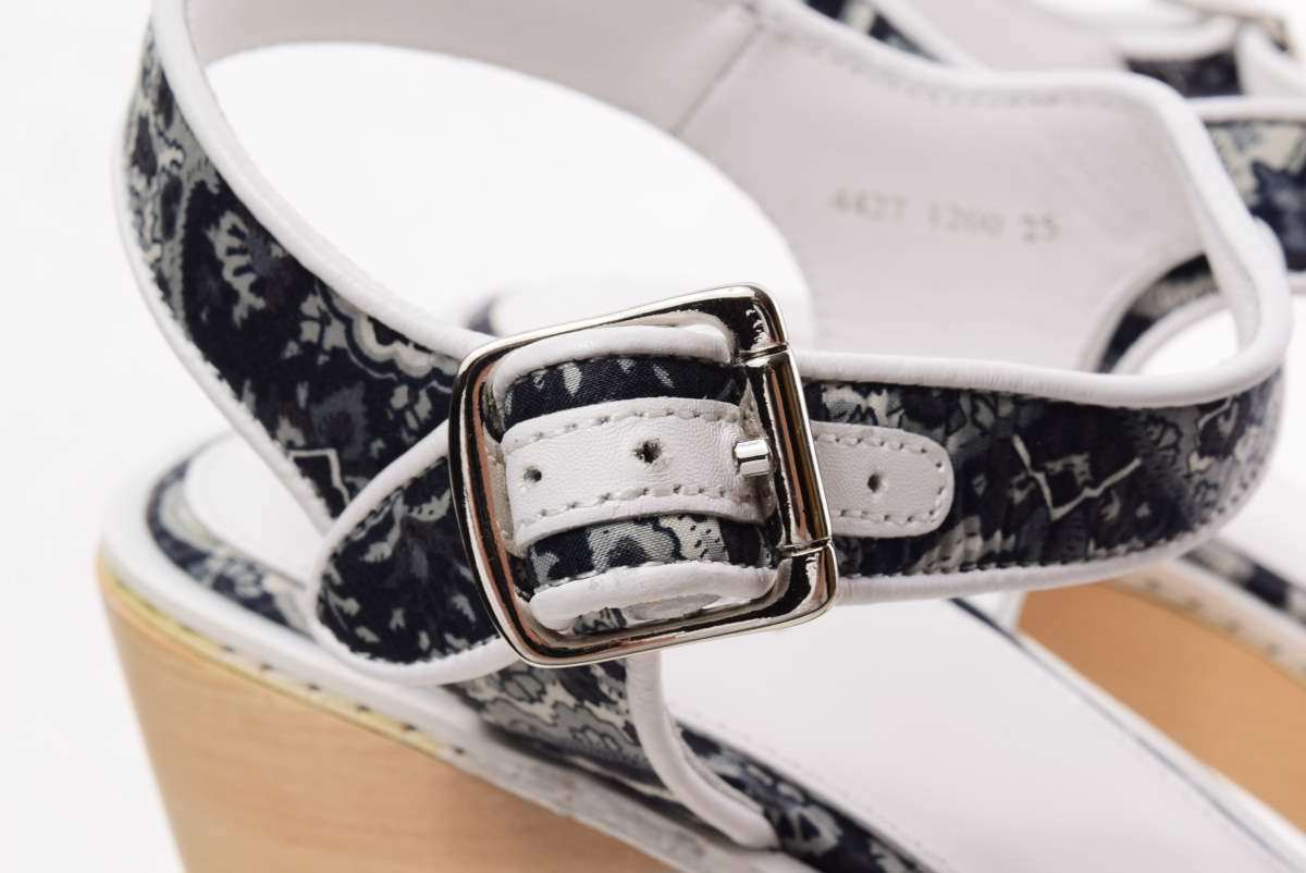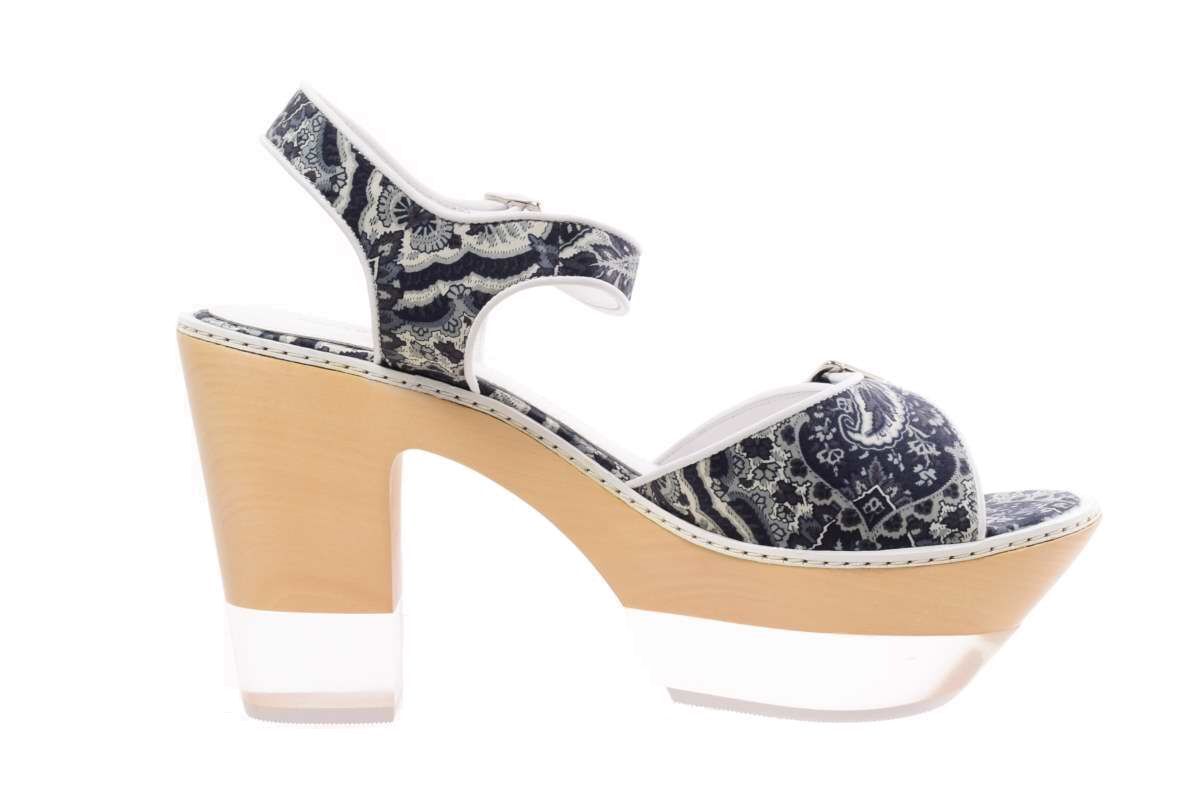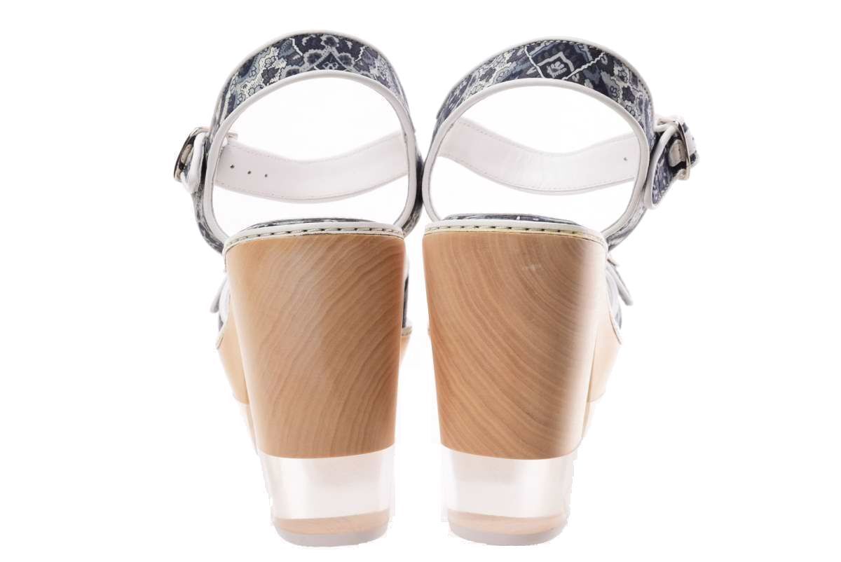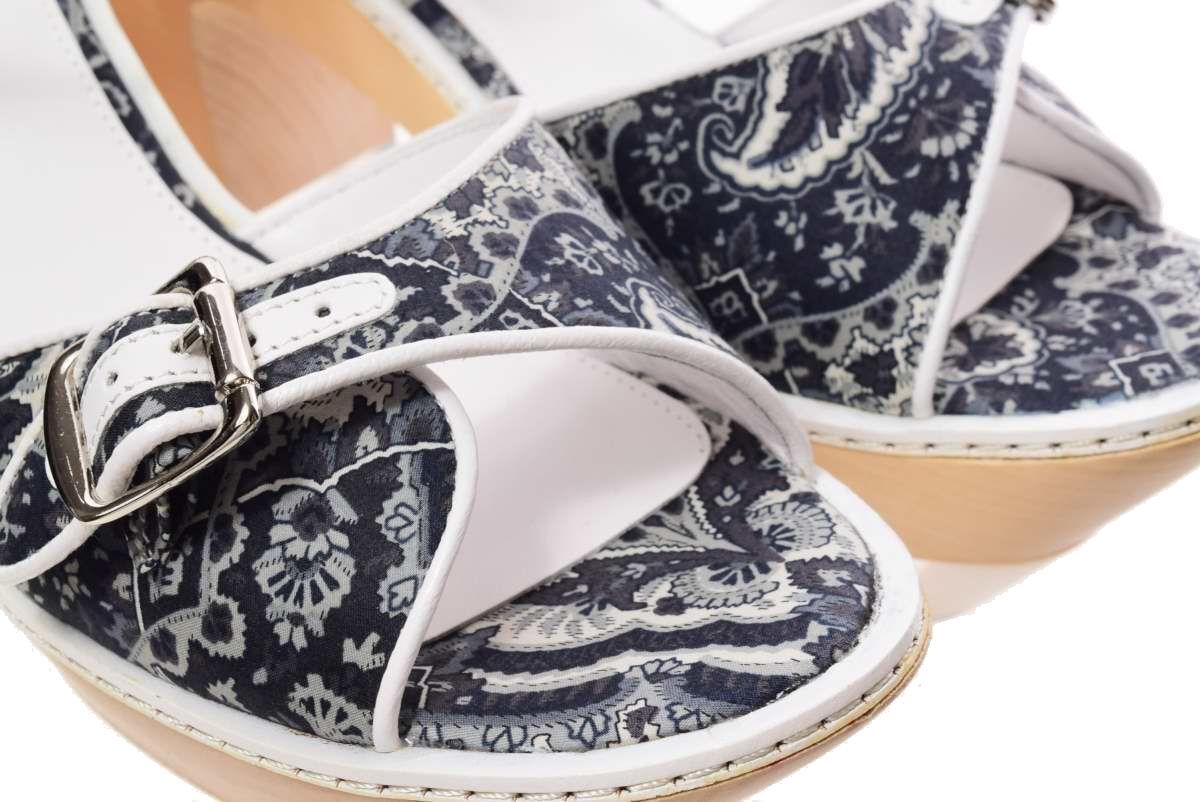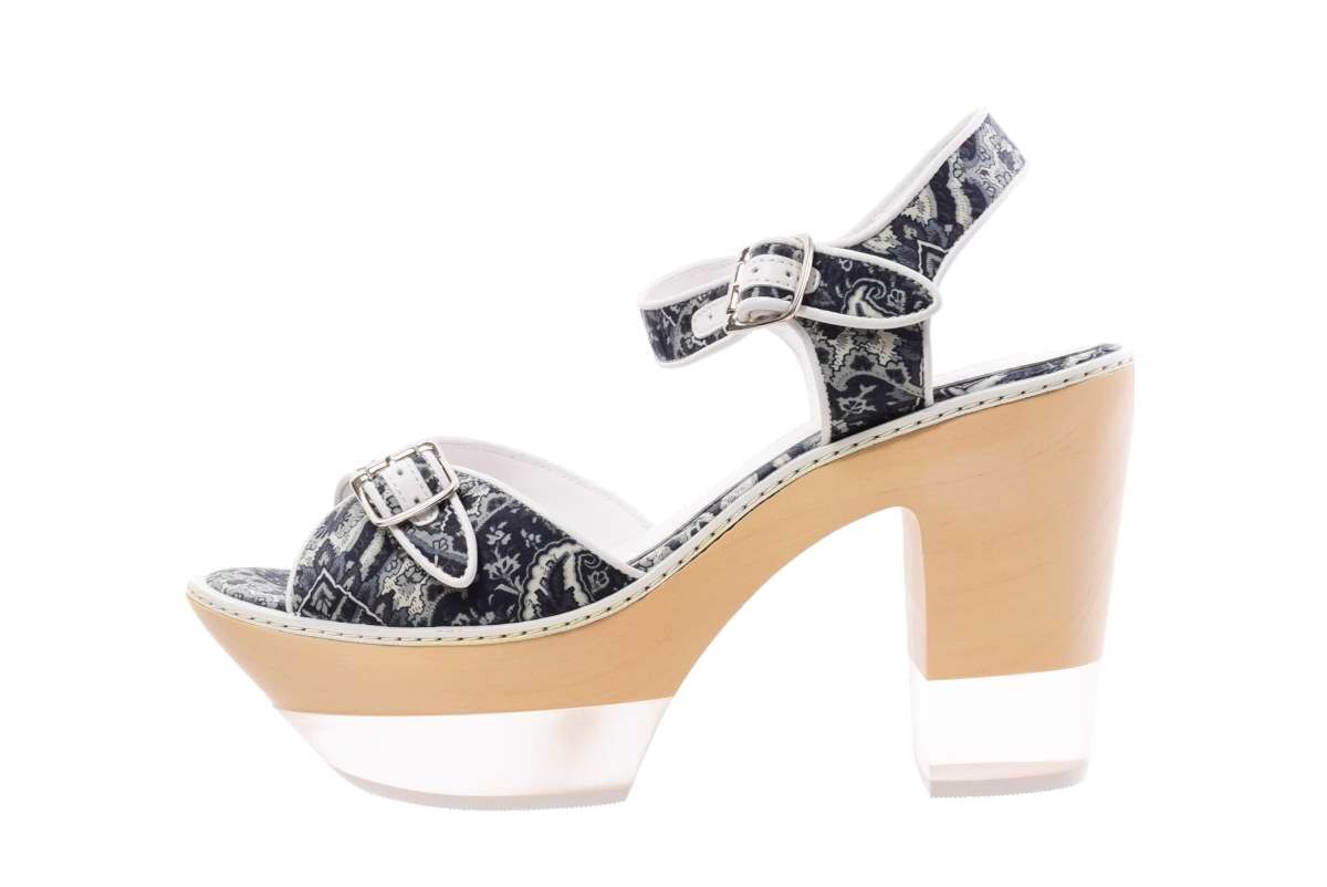 | コメント | Mod:44271200・定価¥42.900-・箱付 / レザートリミングを施したオリジナルのフローラルライクなプリントやクリア素材をプラスしたウッドソールデザインが印象的なストラップサンダルです。 |