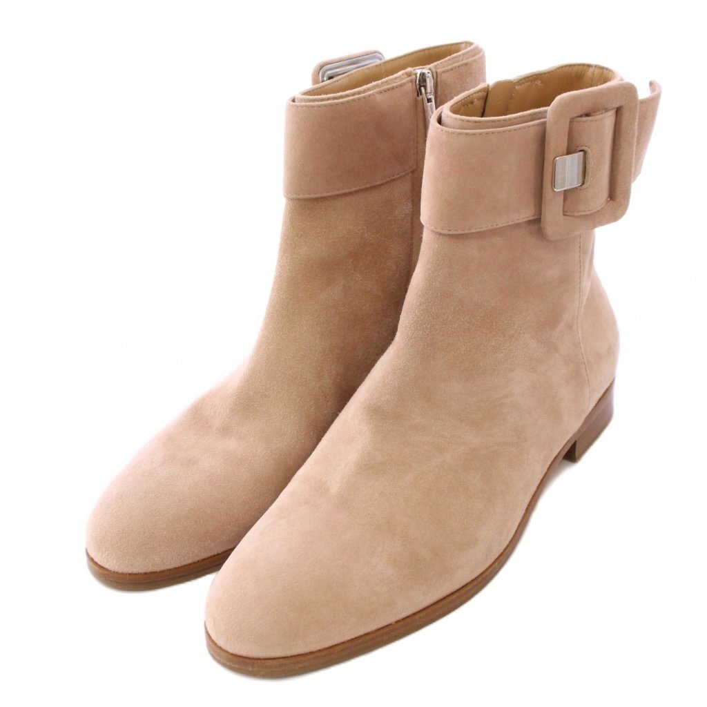 セルジオロッシ Sergio rossi ショートブーツ ラウンドトゥ ローヒール ベルト スエード ワンカラー 37 ピンク /BB レディース