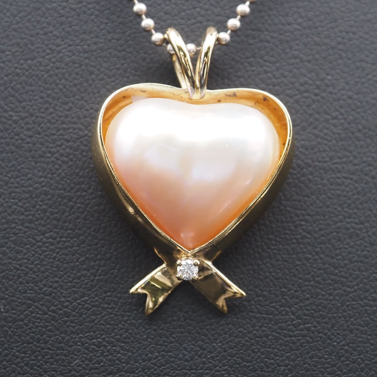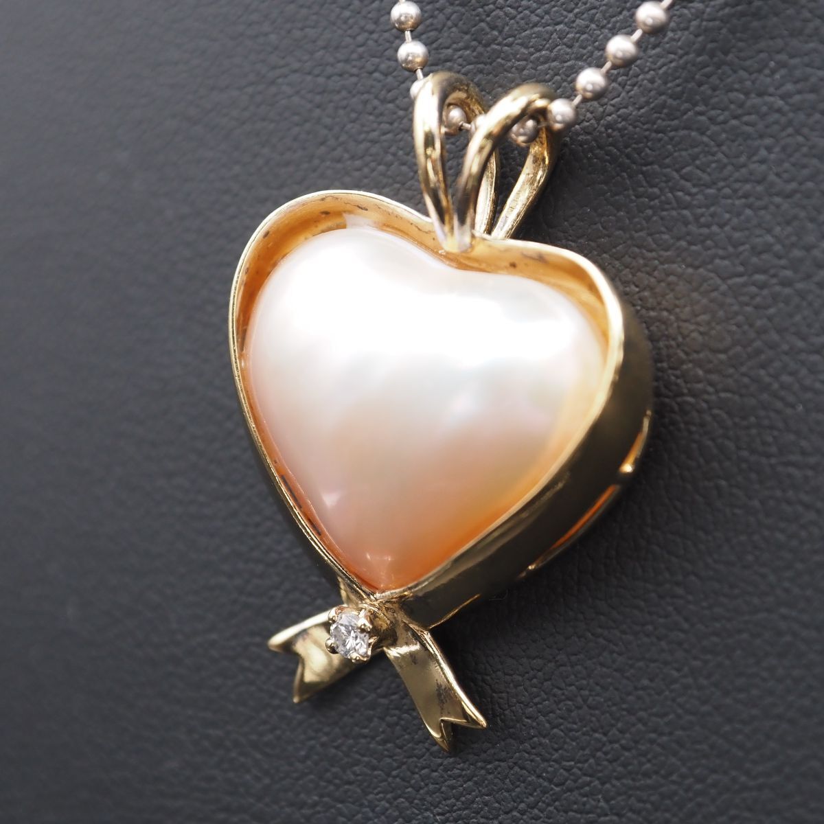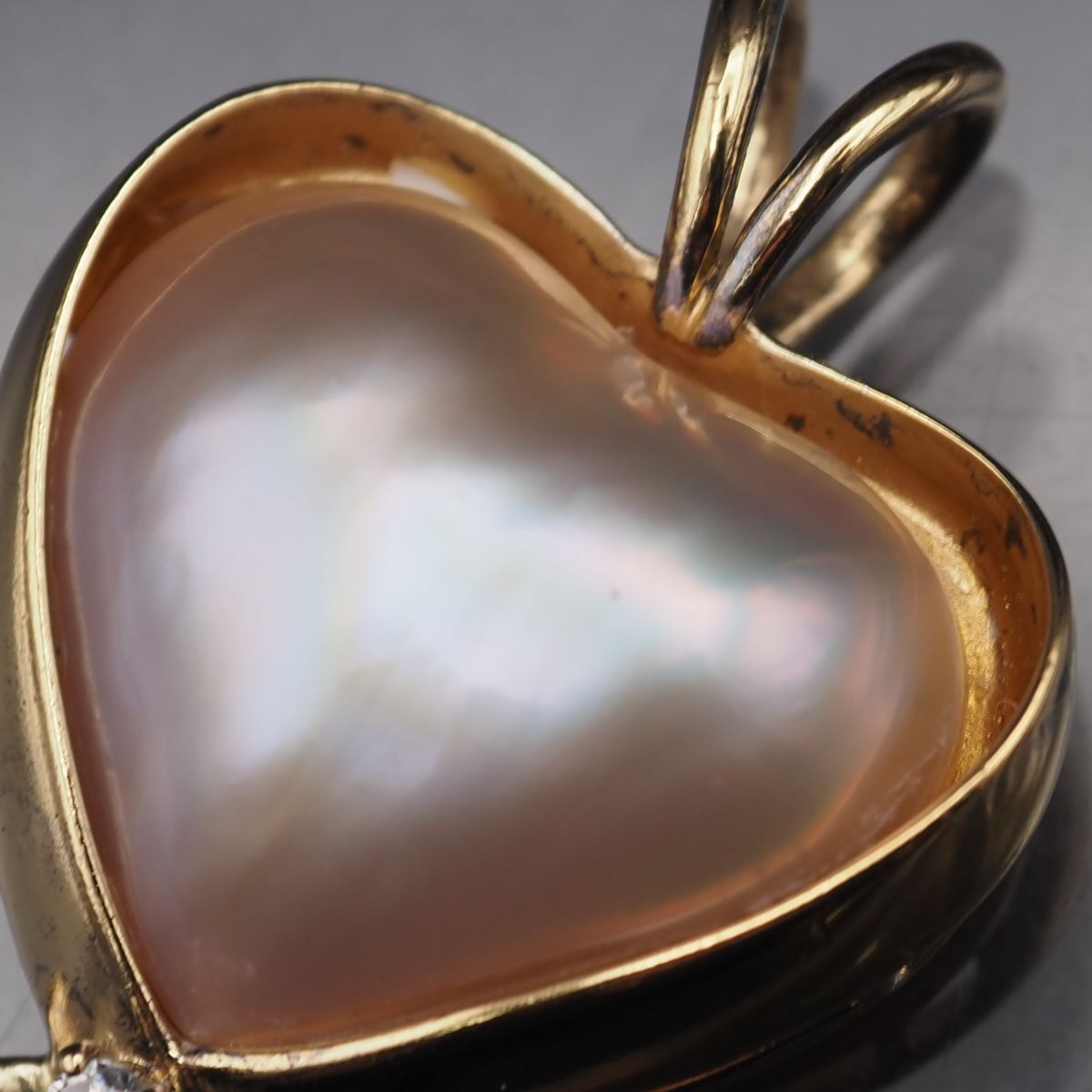 G467 ハートマベパール 真珠 ダイヤモンド 0.05ct ペンダント トップ ピンク系カラー ゴールド デザイン チャーム ヘッド