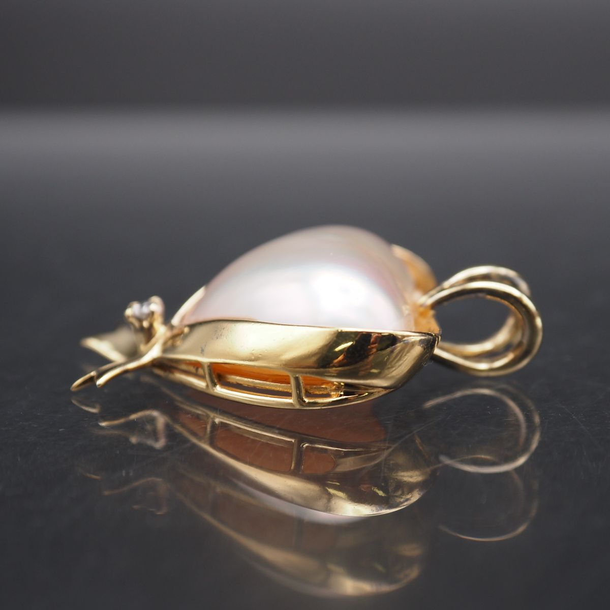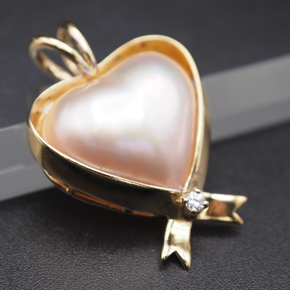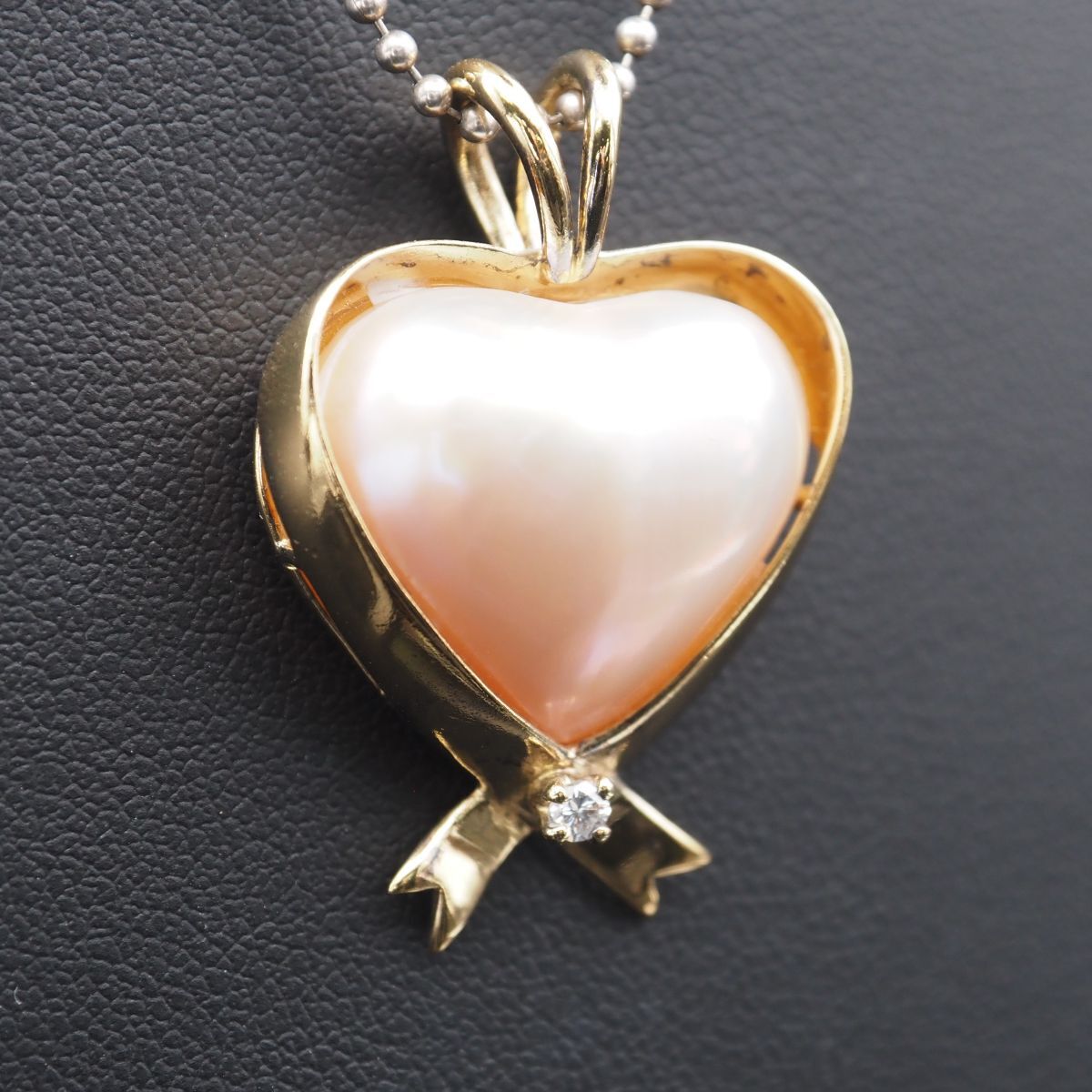 G467 ハートマベパール 真珠 ダイヤモンド 0.05ct ペンダント トップ ピンク系カラー ゴールド デザイン チャーム ヘッド