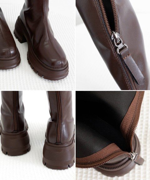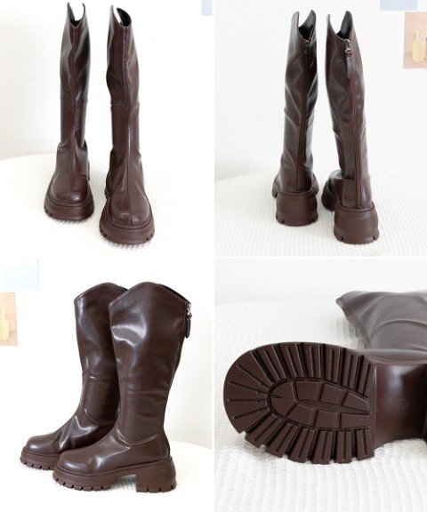 膝下丈ブーツ バックジップジョッキーブーツ 履きやすい おしゃれ美脚脚長ブーツ カジュアル靴 チャンキーヒール 疲れない