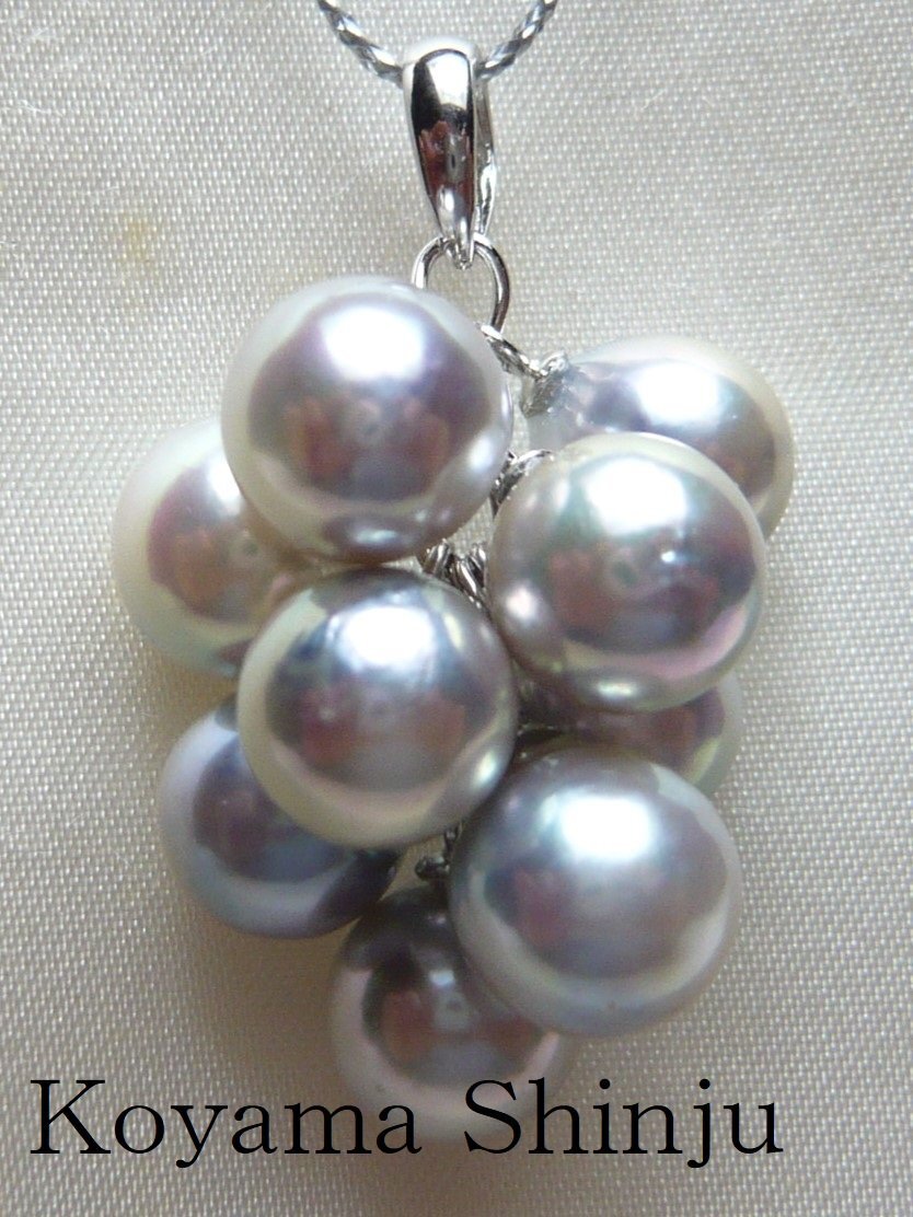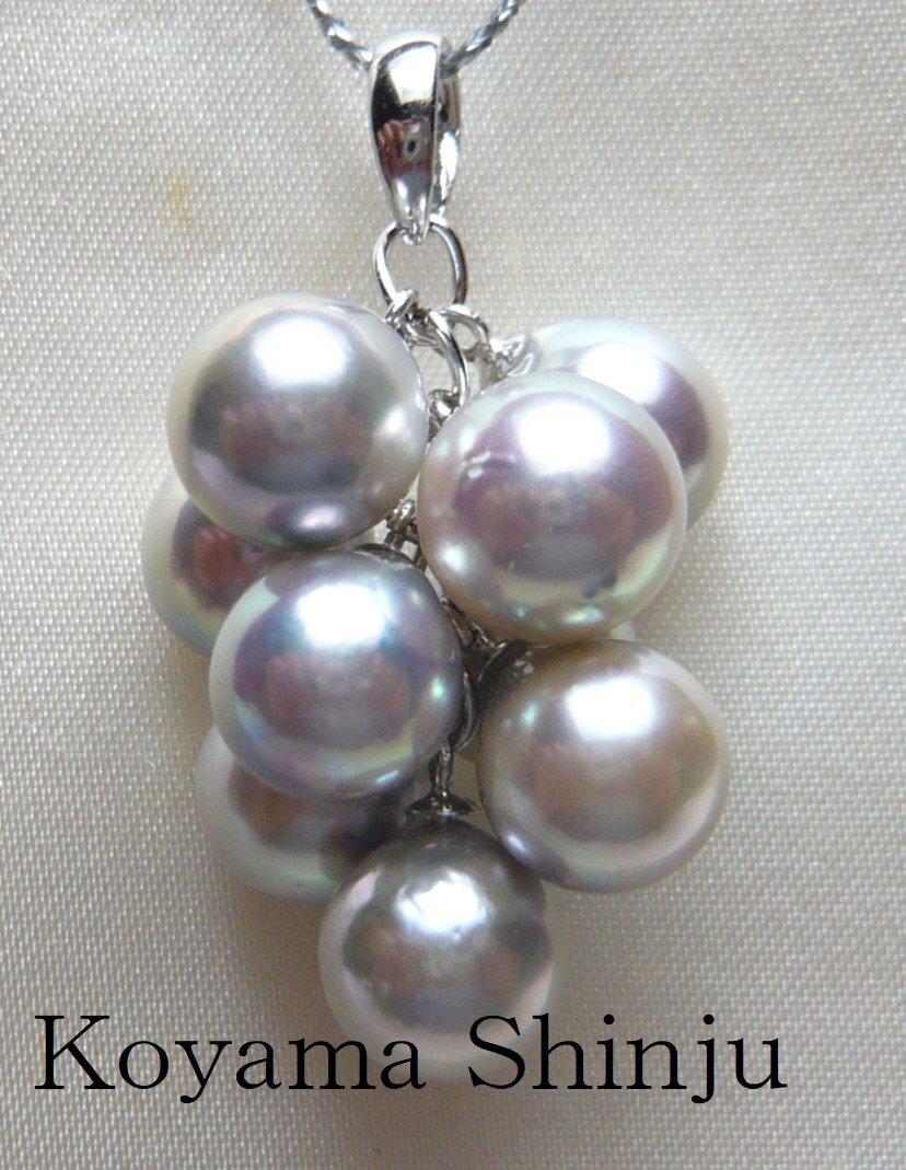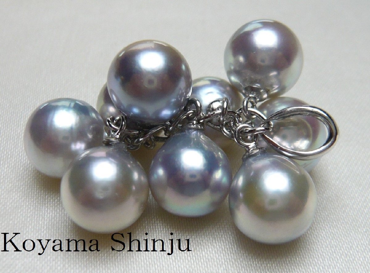 人気商品!美色カラー!ジャラペン!ナチュラル大珠あこや本真珠9個付きパールペンダントトップ |