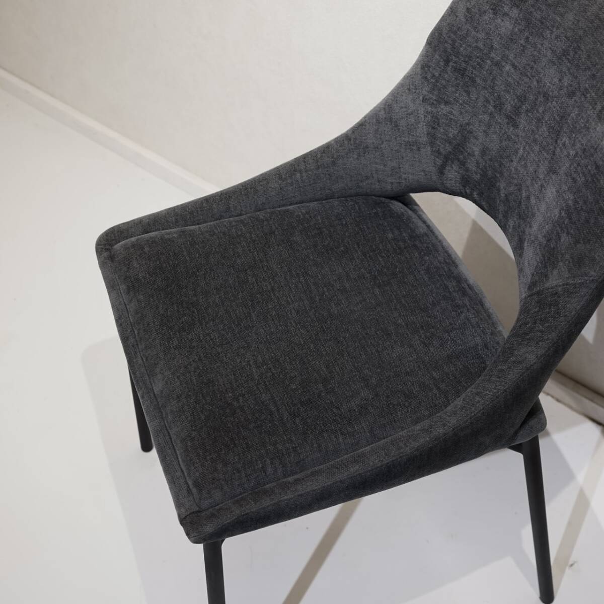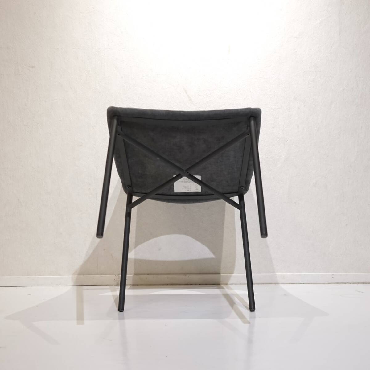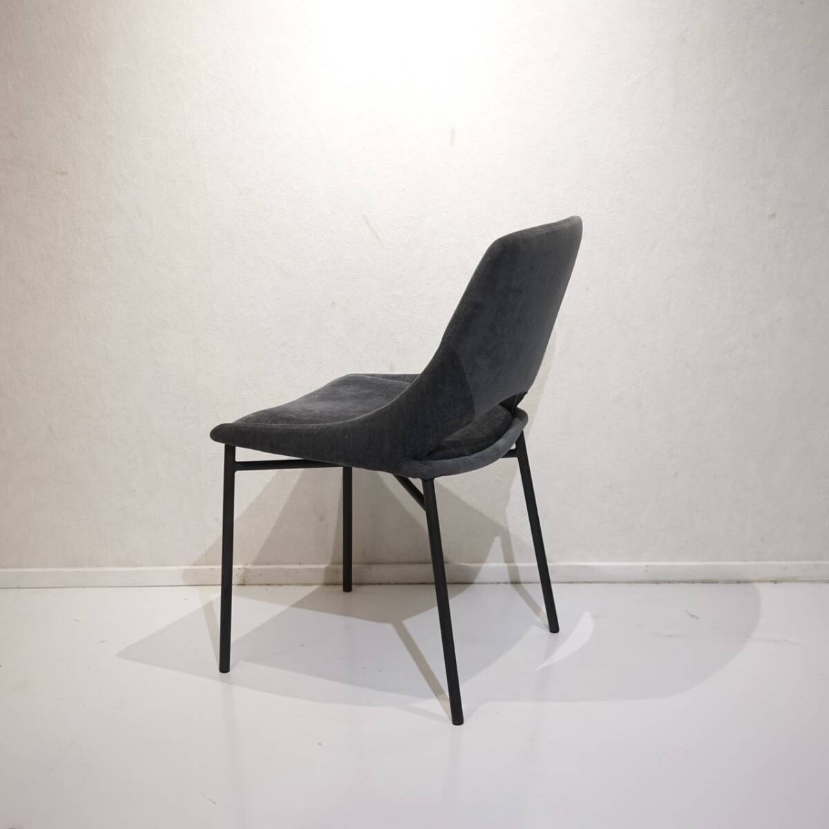 柔らかなファブリックと、シャープなスチール脚の組み合わせが生む軽やかなコントラスト。