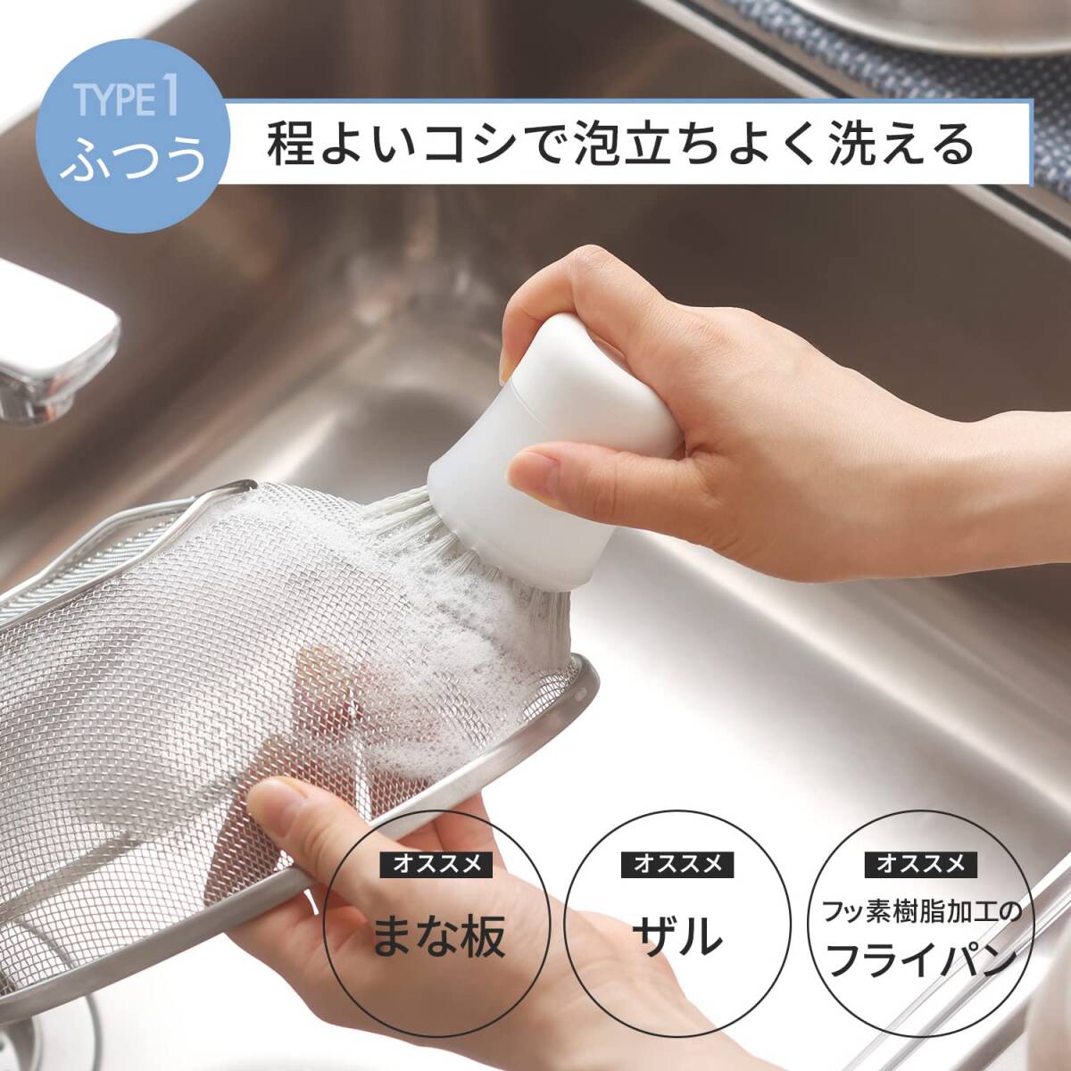 ・【程よいコシで泡立ち良く洗える「ふつう」タイプ】泡立ち・泡持ちのよいウェーブ毛。傷つけたくない道具も、汚れはしっかりと落としながら優しく洗えます。まな板・ザル・フッ素樹脂加工のフライパンなどにおすすめです。