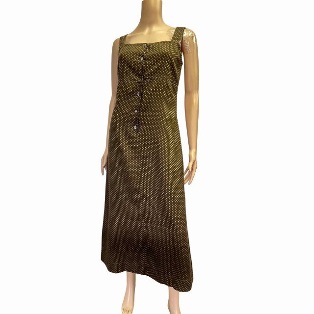 | サイズ*実寸 | ★【サイズ】 *7号表示です ※サイズについては、必ず実寸も合わせてご参考下さい。 ★【実寸】 平置き(単位cm) *肩幅36 *身幅42 *ウエスト39 *ヒップ47 *着丈122 ※生地の性質上測り方で数センチ変わる場合がありますので多少の誤差はご了承下さい。 | ||||||||||