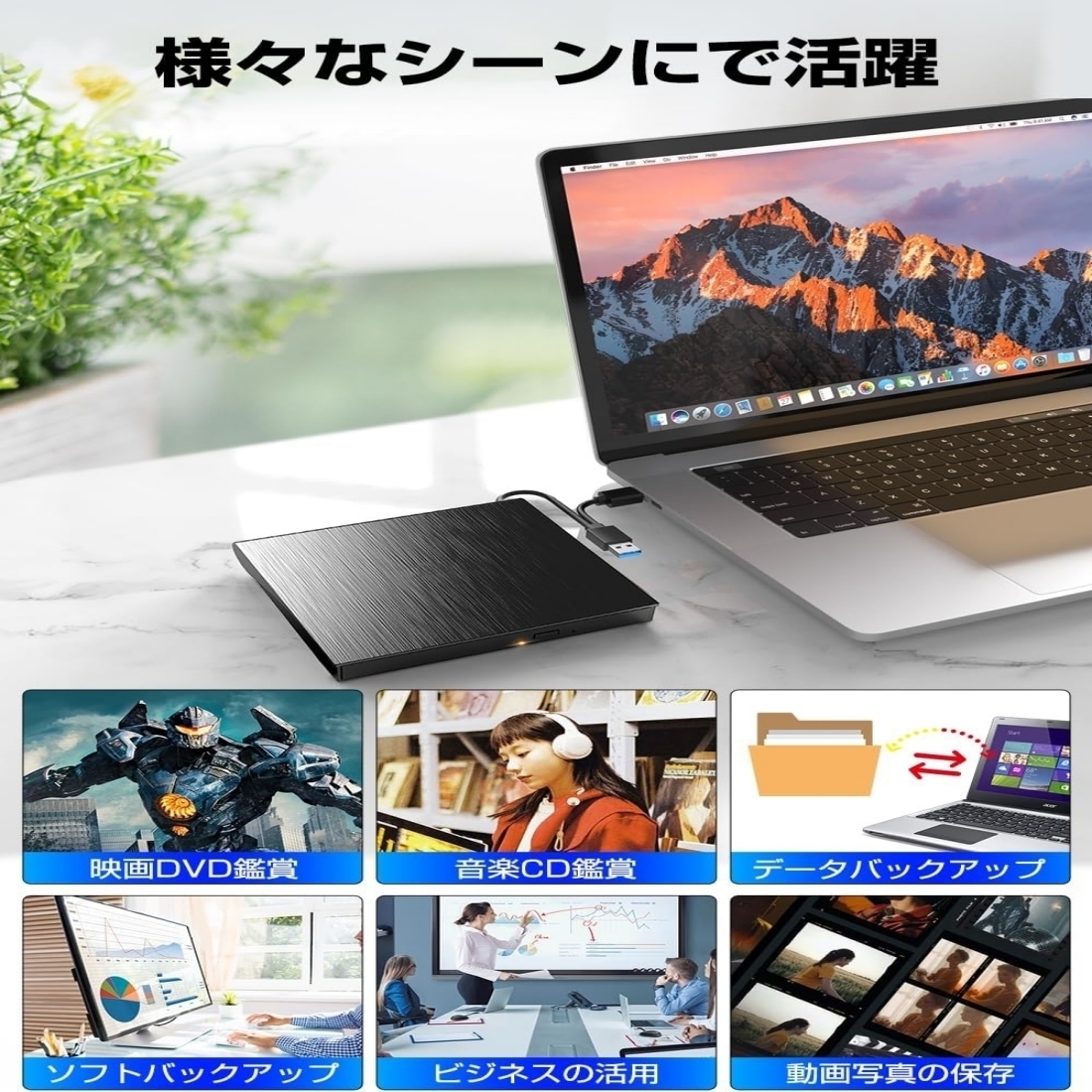 • 【快適な使用環境・静音稼働】 この 外付けcdドライブ は静音設計となり、高速で高精度な処理をしながらも、その動作音は非常に静かです。集中したい作業時や静かな夜、リラックスしたいときでも安心してこの 外付けdvd を使用できます。高度な技術とユーザーの快適性が融合した究極の選択肢となる dvdプレイヤー です。