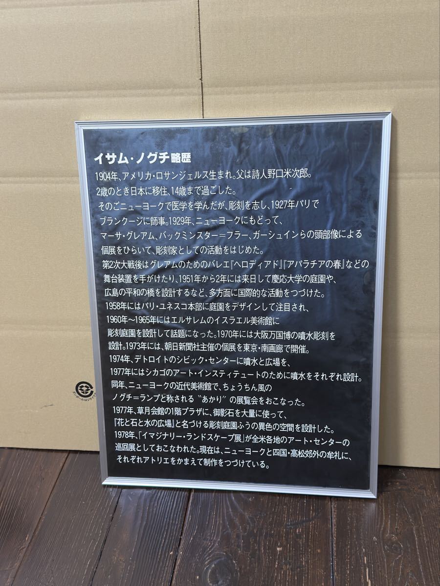 代表作には、札幌のモエレ沼公園の全体設計、広島平和記念公園の噴水、照明器具のAKARIなどがあります。