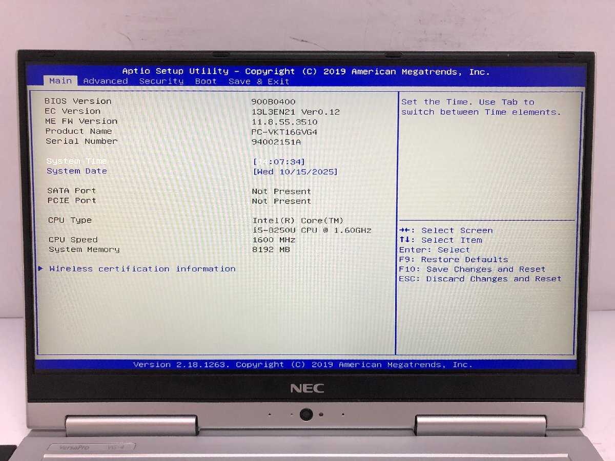 ジャンク/ NEC PC-VKT16GVG4 Intel Core i5-8250U メモリ8.19GB ストレージ無し 【K23032】
