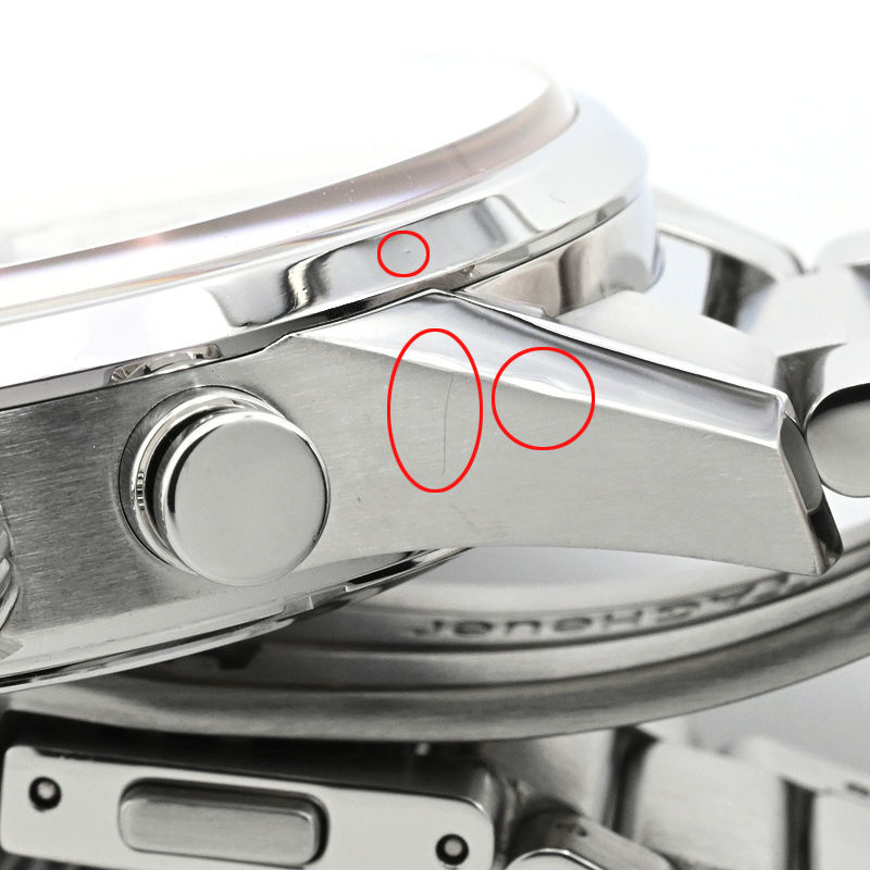 | 状態 | ランクA オーバーホールと新品仕上げ済みでございます。 ベゼルとフラッシュフィットに光の反射で見える極微細なキズ、ラグとケースサイドとバックルに微細なスレと微細な打痕、リューズとプッシュボタンに10倍ルーペで見える極微細なスレがございます。 |