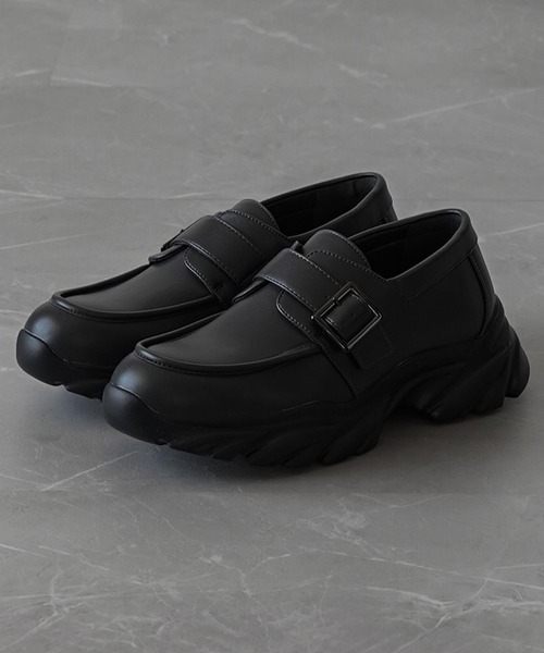 参考商品名:【ELLUV/エルヴ】 +7cmボリュームハイソール メタルバックル モードローファー