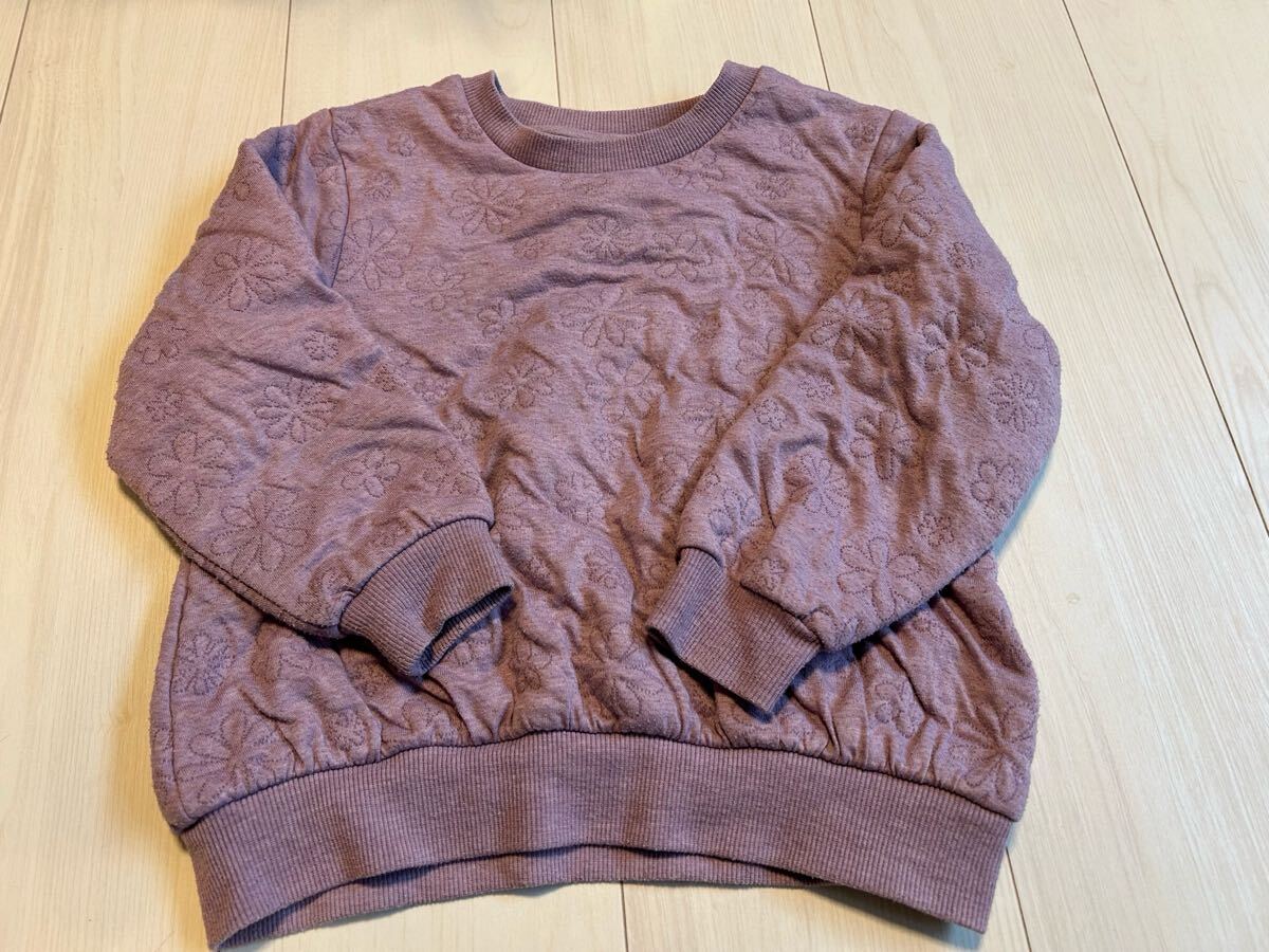 花柄のキルティングが可愛らしいセットアップです。パープル系の色味で、これからの季節にぴったりです。数回着用しましたが、目立った傷や汚れはなく、比較的きれいな状態です。