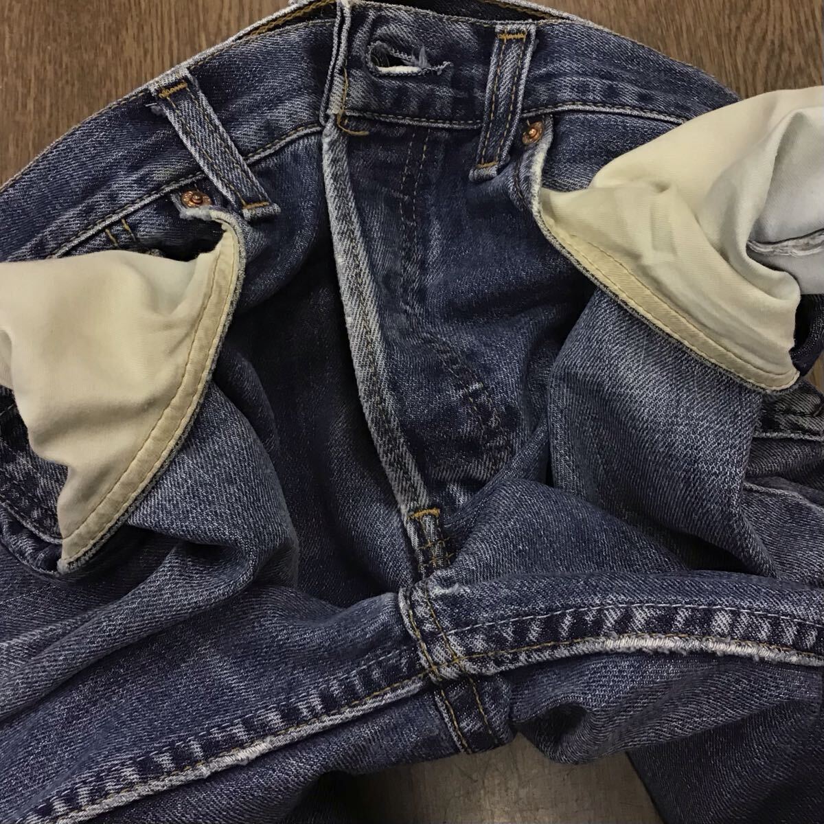 ●股下→股の合わせ部分(ステッチが交差する部分)から裾までをステッチ上に沿って計測