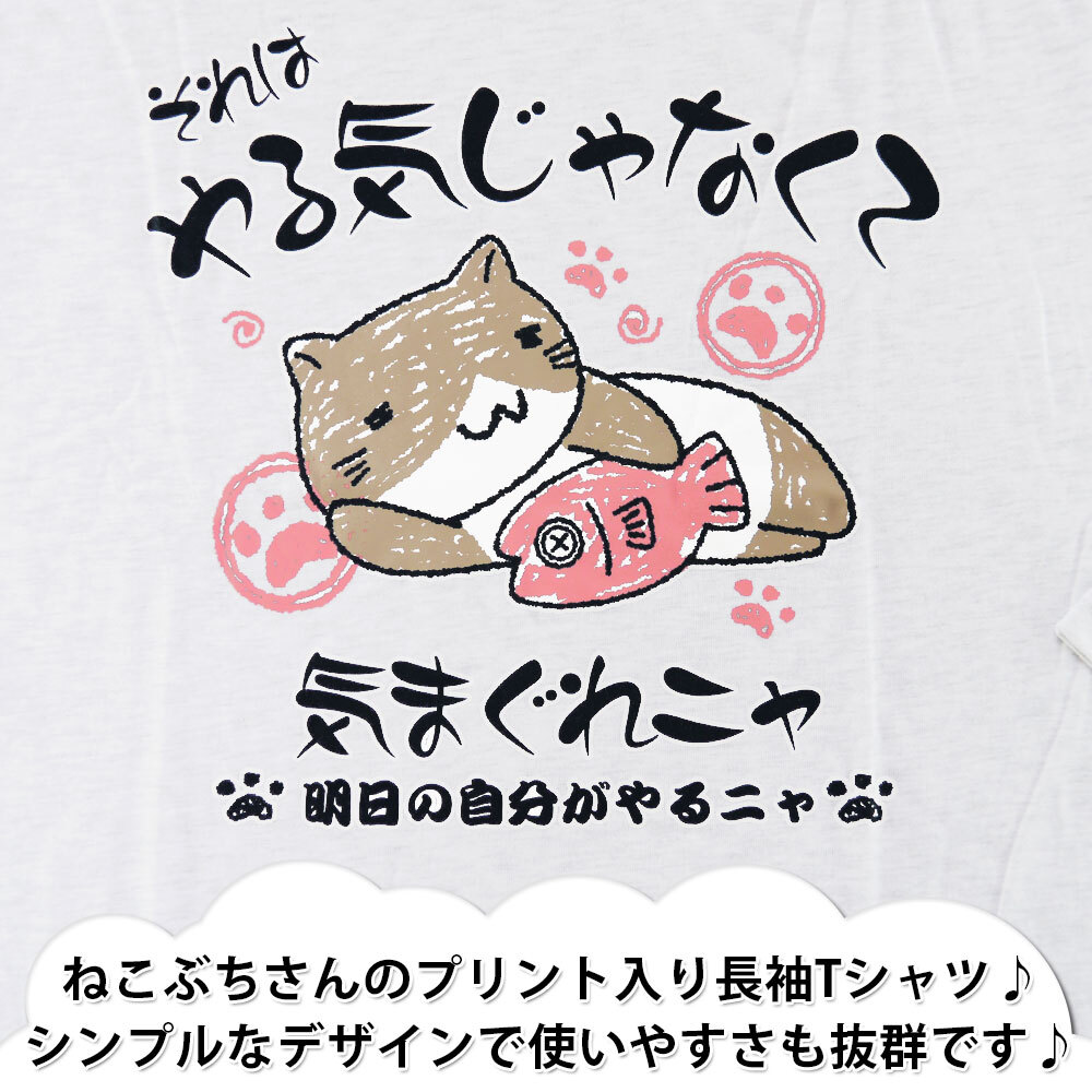 正規店仕入れの新品未使用品です 綿とポリエステル素材で、吸汗速乾に優れます ねこぶちさんのプリント入り長袖Tシャツ シンプルなデザインで使いやすさも抜群です |